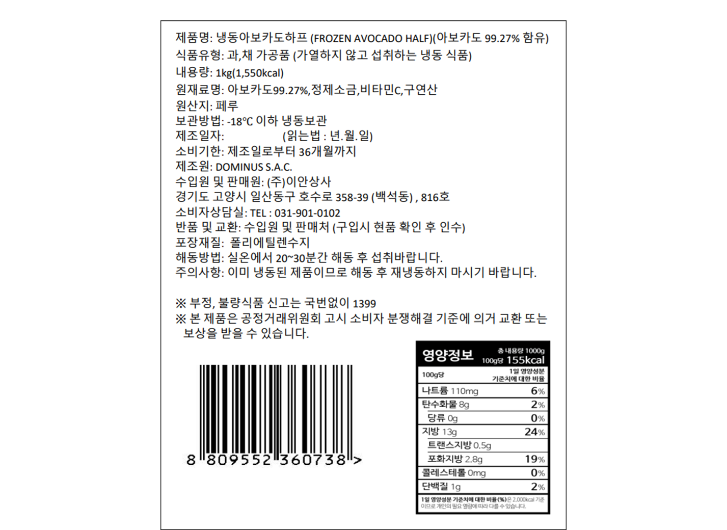 변색을 방지하기 위해 소량의 비타민C(또는 구연산)가 첨가되어 있으며, 이로 인해 약간의 산미가 느껴질 수 있으나 품질에는 이상이 없는 자연스러운 현상입니다.