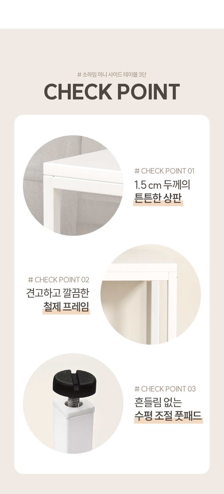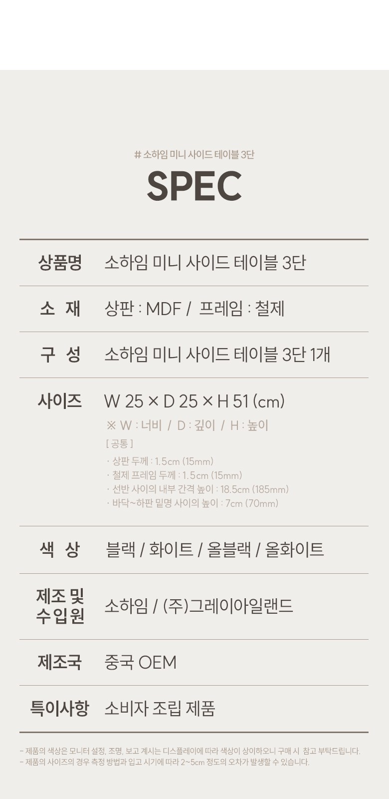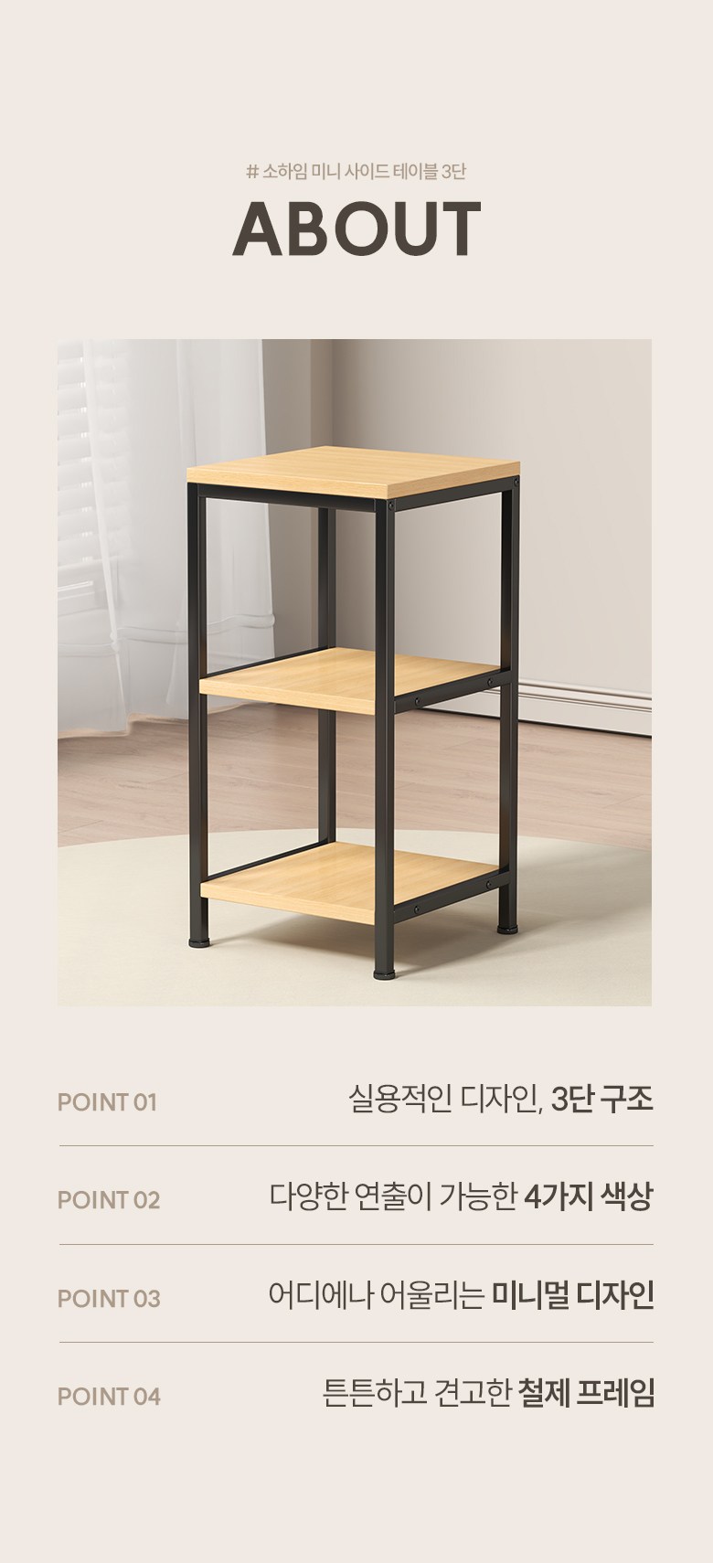 | 품명 | 소하임 미니 사이드 테이블 3단 | KC 인증정보 | 해당없음 |