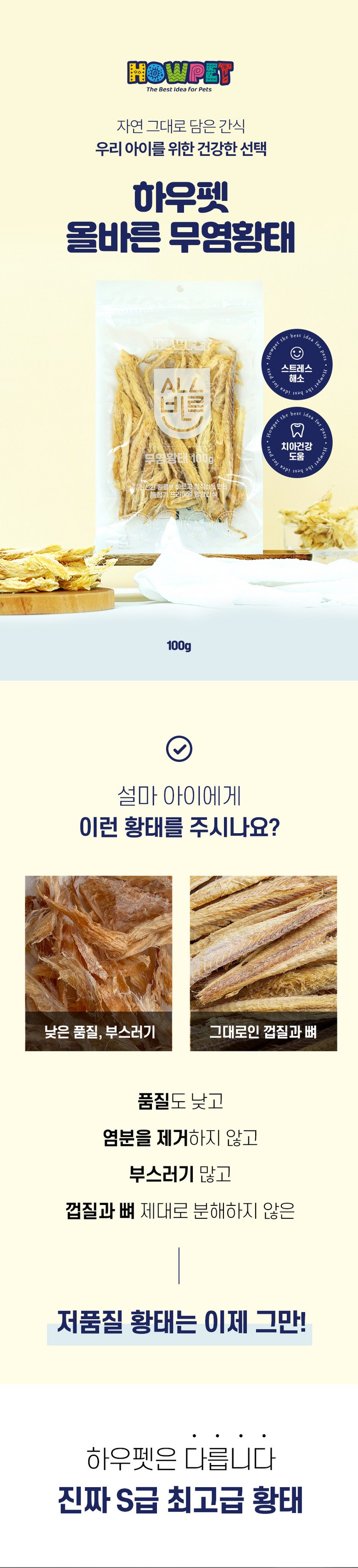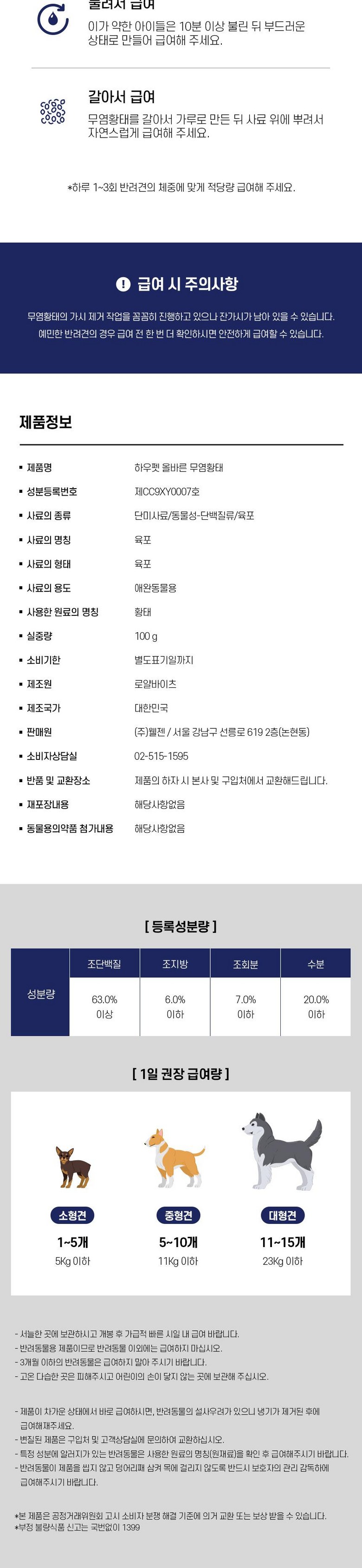 | 품명 및 모델명 | 하우펫 올바른 무염황태 간식 100g | 인증사항 | 상품 상세페이지 참조 |