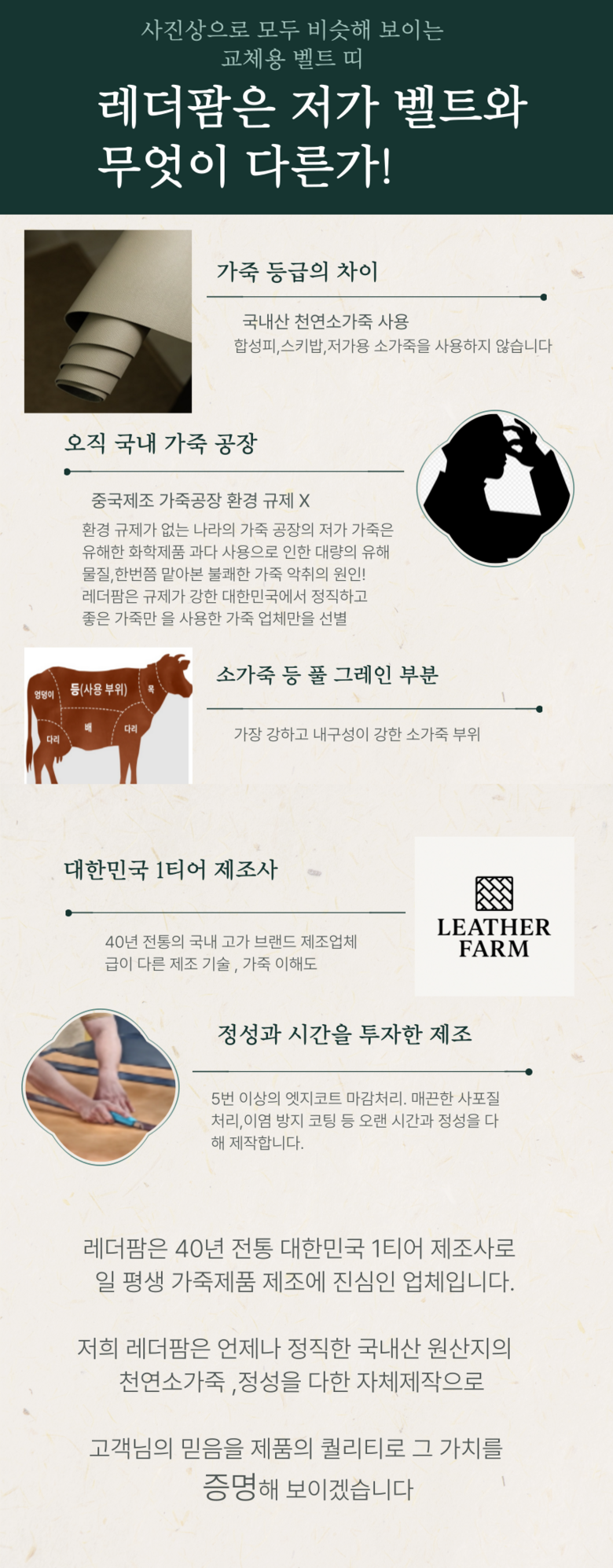 | 치수 | 옵션별 선택 가능 | 제조자(수입자) | 레더팜 국내직접제작 |