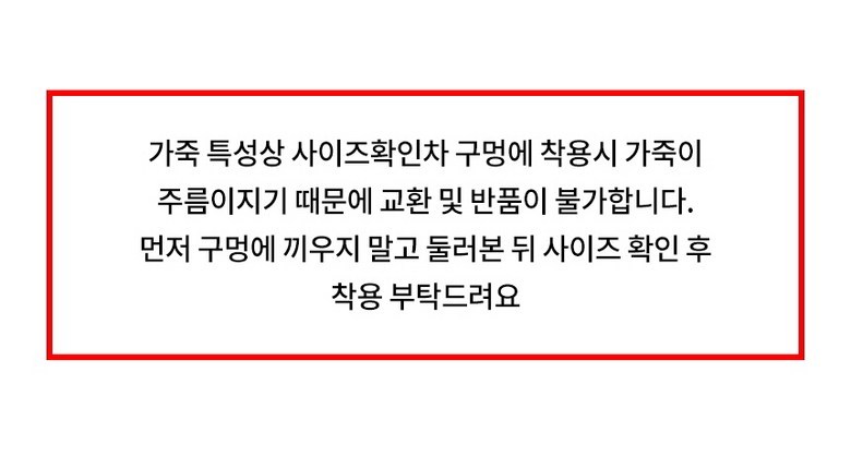 - ㆍ모니터 해상도의 차이로 인해 색상이나 이미지가 실제와 달라, 고객이 단순 변심으로 교환/반품을 무료로 요청하는 경우