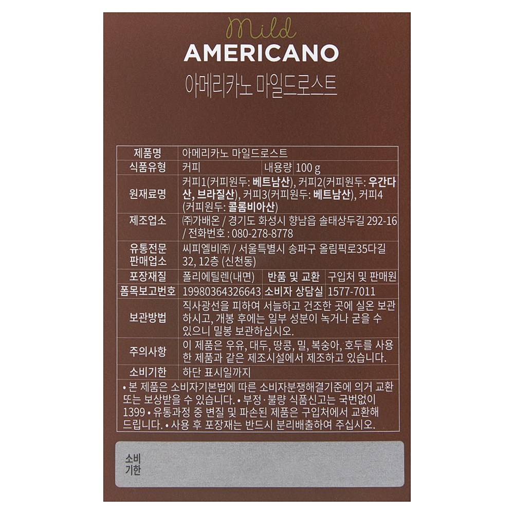 - 맛/향: 아메리카노/블랙