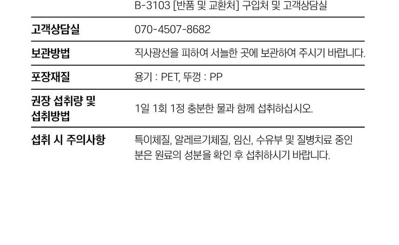 | 제조연월일, 소비기한 또는 품질유지기한 | 소비기한(또는 유통기한) : 2027년 04월 29일 이거나 그 이후인 상품 제조년월일 : 2025년 04월 30일 이후인 제조상품 | 세부 품목군별 표시사항 | 상품 상세페이지 참조 |