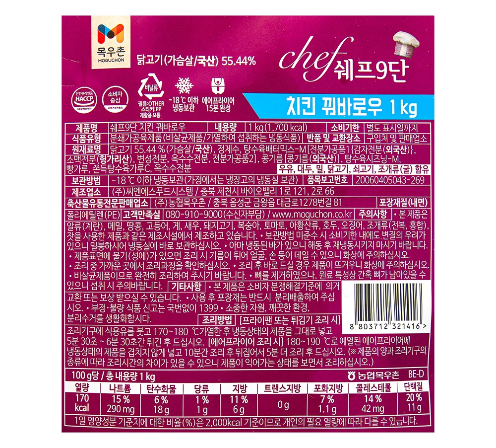 쫄깃한 닭가슴살을 넣은 꿔바로우예요. 농협목우촌의 노하우를 담아 만들어 씹을수록 담백한 육즙이 배어나죠. 에어프라이어로 손쉽게 조리해, 겉은 바삭하고 속은 쫀득한 식감을 즐겨보세요. 새콤달콤한 소스를 준비해 곁들이면 전문점 못지않은 별미가 완성된답니다.