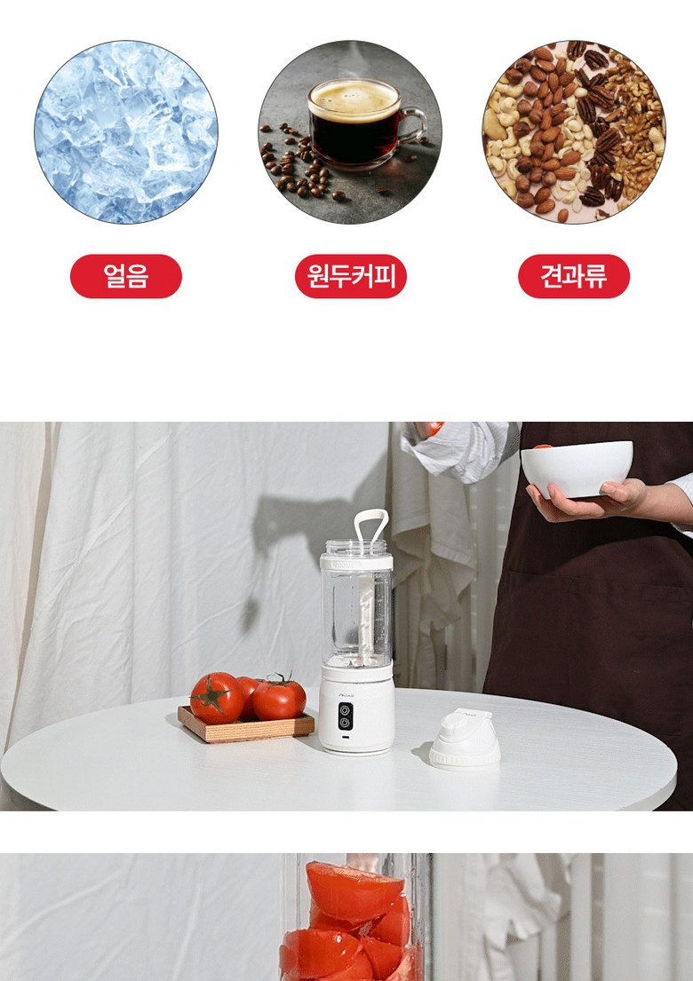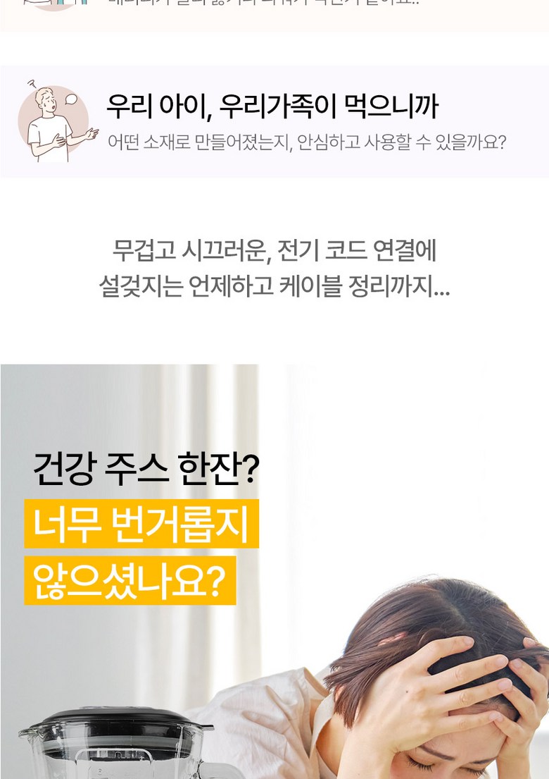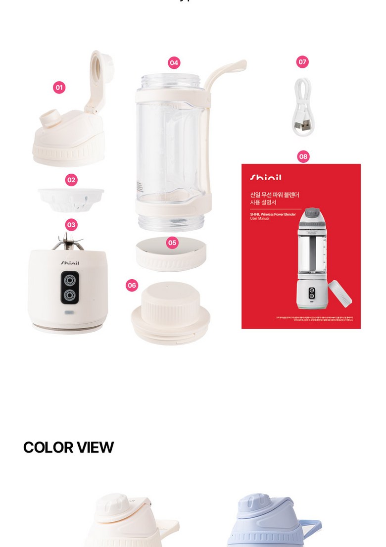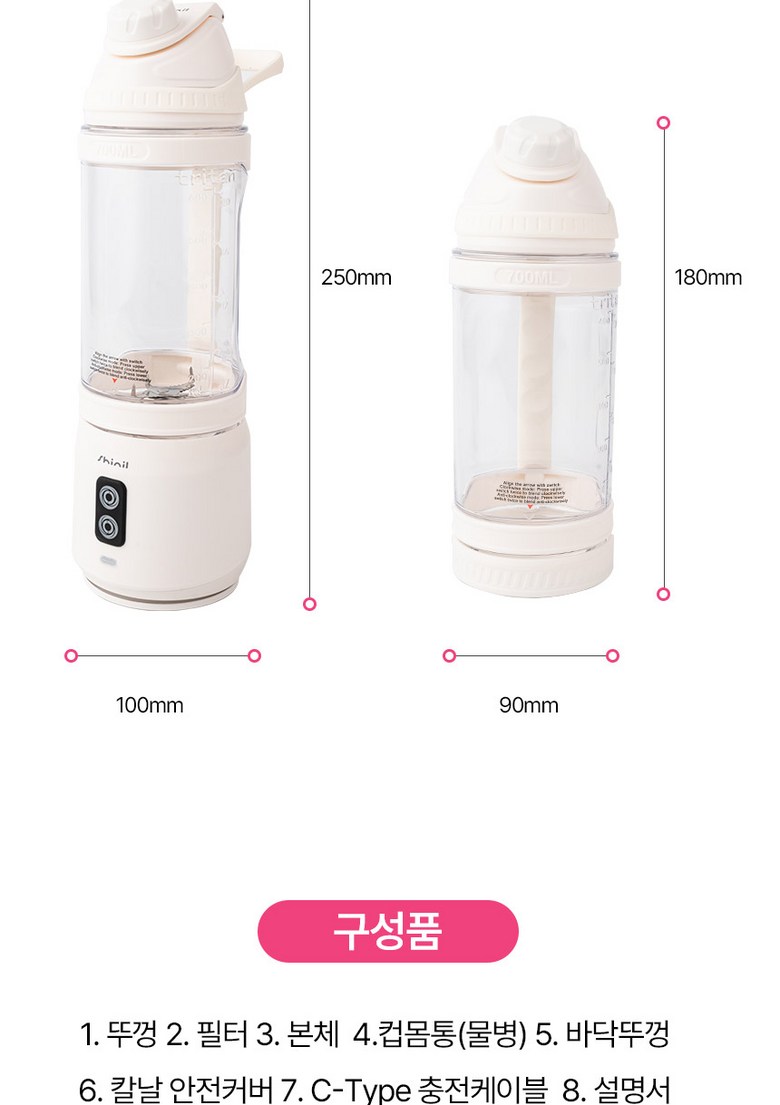 - 구성품: 뚜껑+필터+본체+물병+바닥뚜껑+칼날커버+케이블