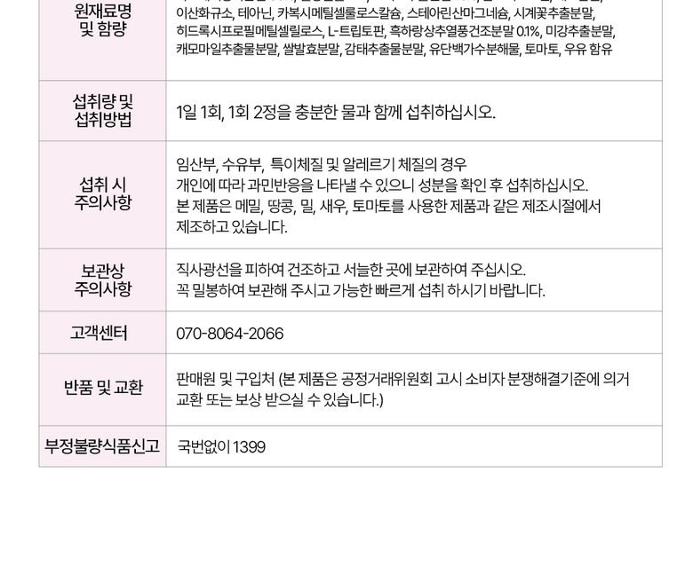 - 건강식품 성분: 복합건강식품