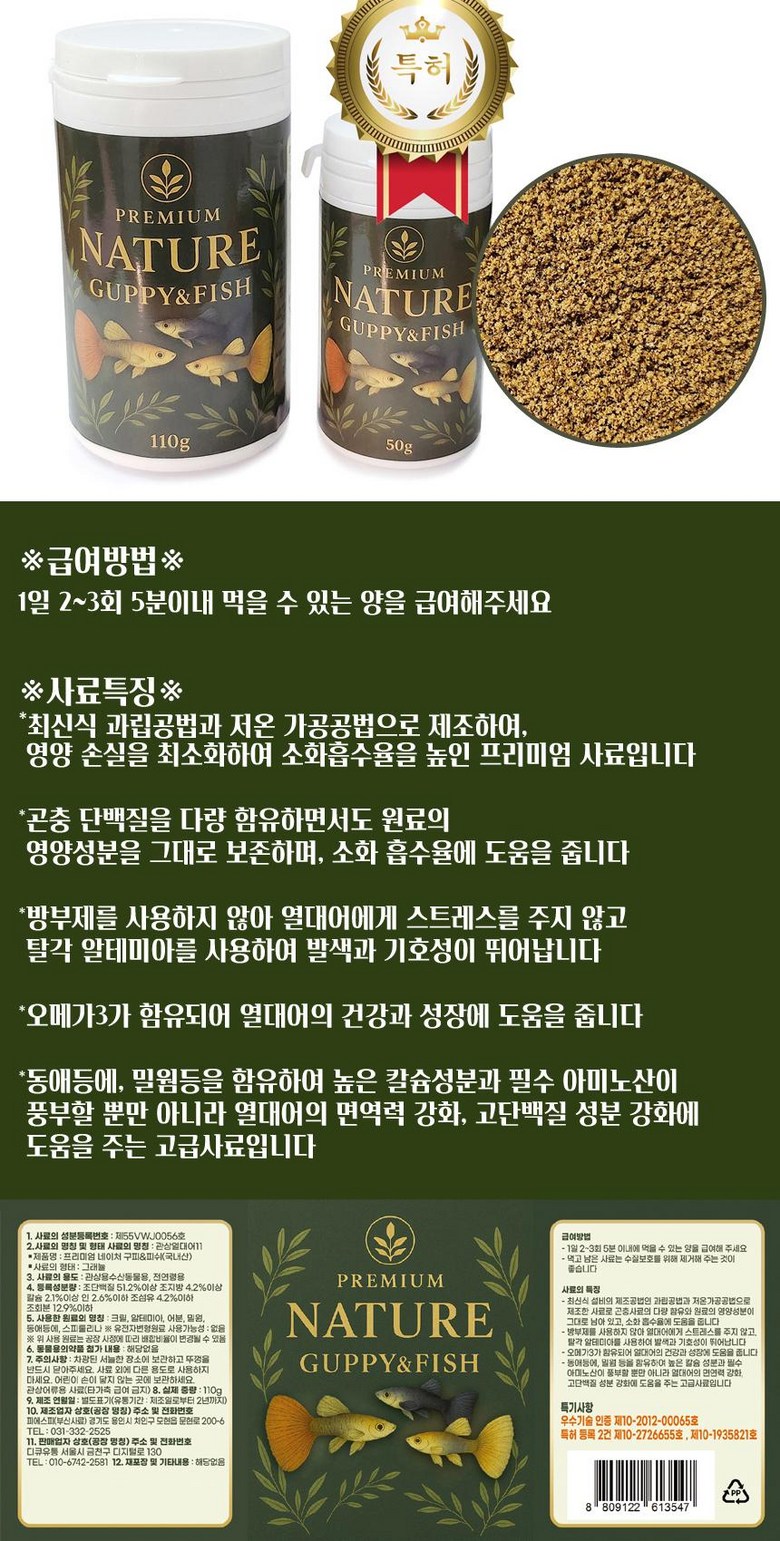 | 품명 및 모델명 | 구피사료 | 인증/허가 사항 | 해당없음 |