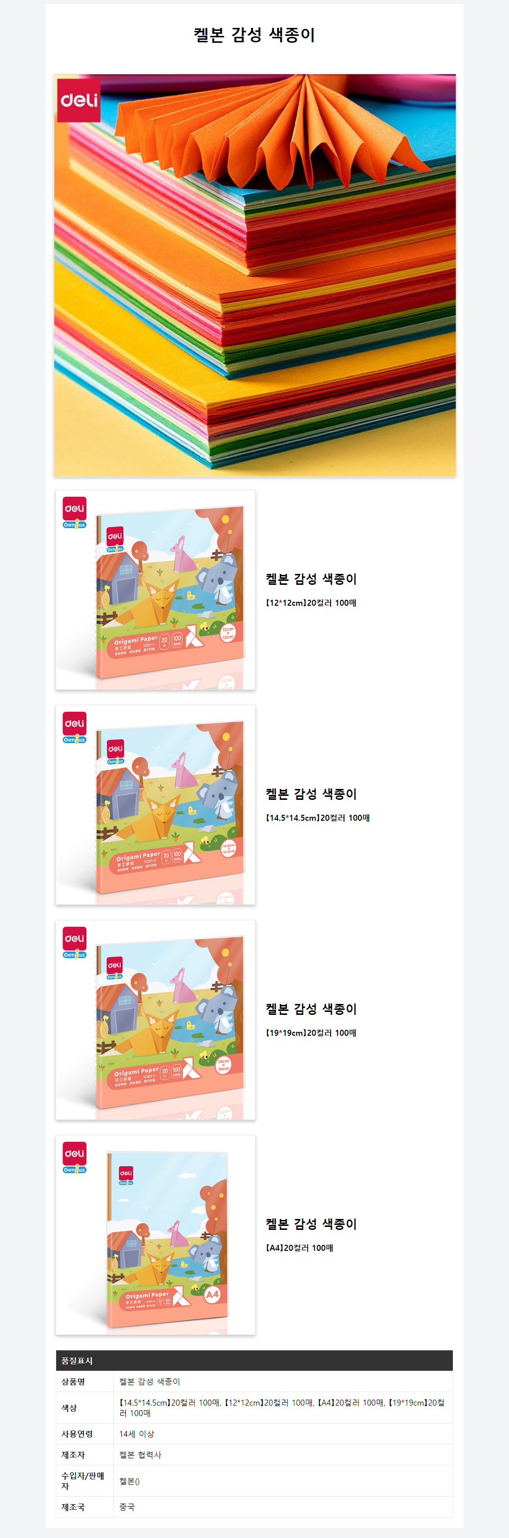 | 품명 및 모델명 | 켈본 감성 색종이 | 인증/허가 사항 | 해당없음(14세이상) |