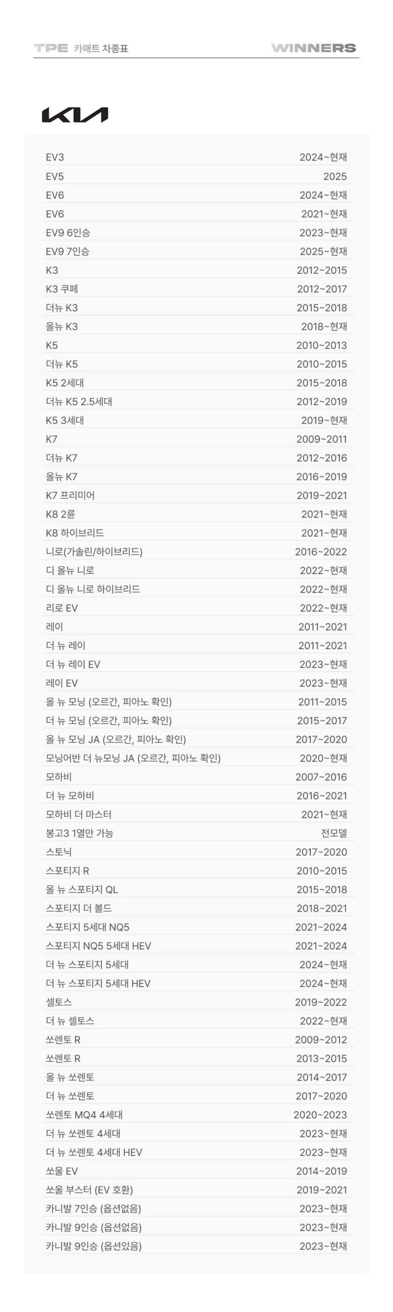 | KC 인증정보(자동차관리법에 따른 자기인증 대상 자동차부품에 한함) | 해당사항없음 | 제조자(수입자) | 위너스상사 |