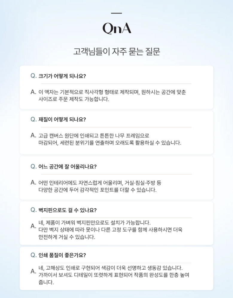 - 가격, 판매자, 교환/환불 및 배송 등 해당 상품 자체와 관련 없는 문의는 고객센터 내 1:1 문의하기를 이용해주세요.