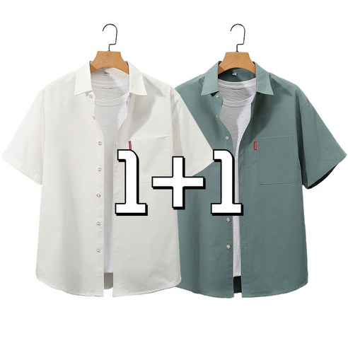 큰귀멍멍 남자 오버핏 셔츠 무지 링클프리 캐주얼 반팔셔츠 1+1