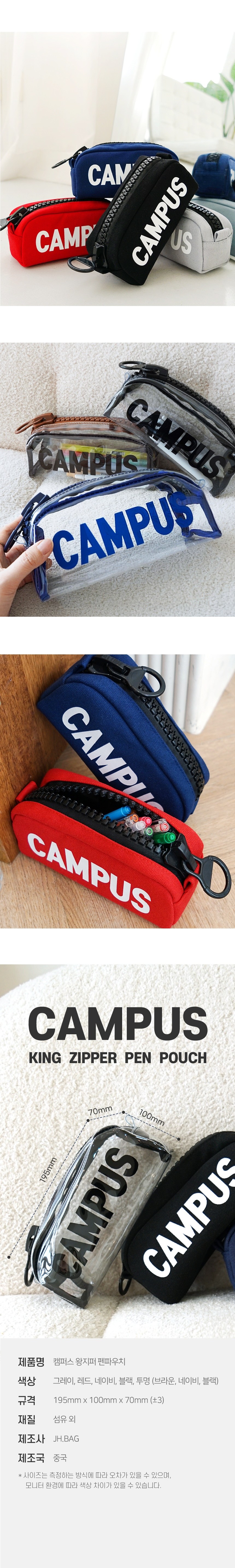 | 품명 및 모델명 | 캠퍼스 왕지퍼 투명 펜파우치 (YPC-8794) | 인증/허가 사항 | 해당없음(14세이상) |