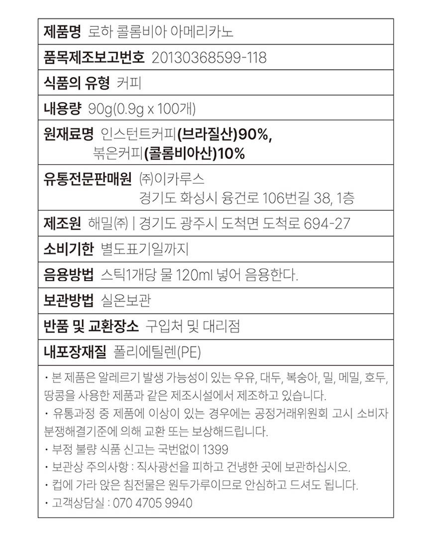 - 맛/향: 아메리카노