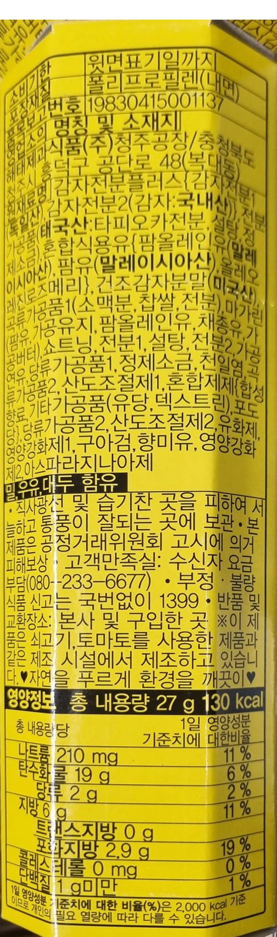 | 제품명 | 구운감자 | 식품의 유형 | 과자(유처리제품) |