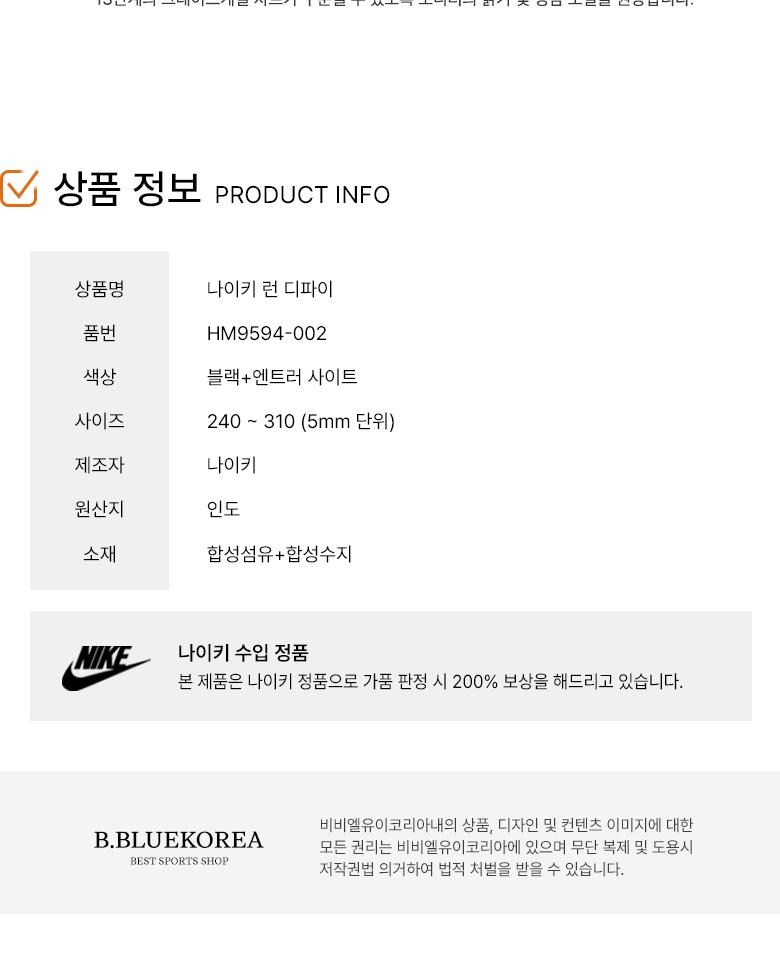 | 치수 | 상품 상세페이지 참조 | 제조자(수입자) | 나이키/병행수입 |