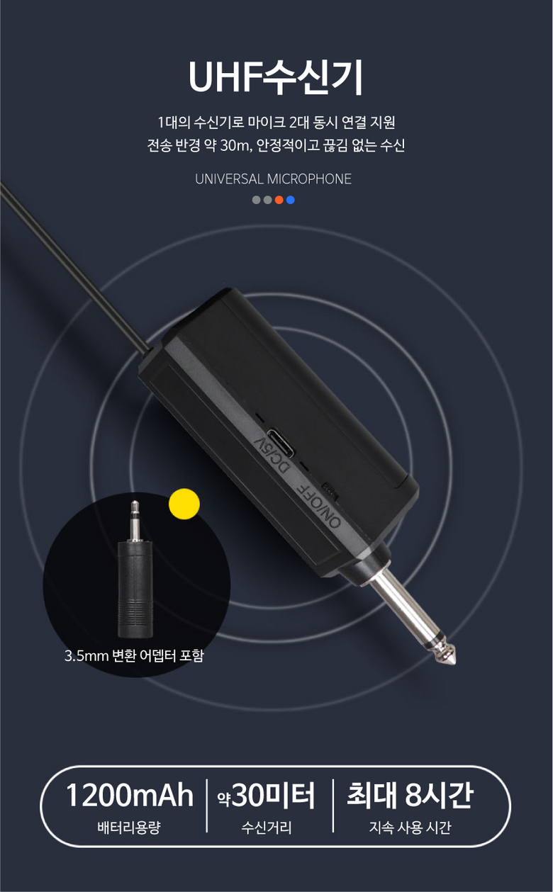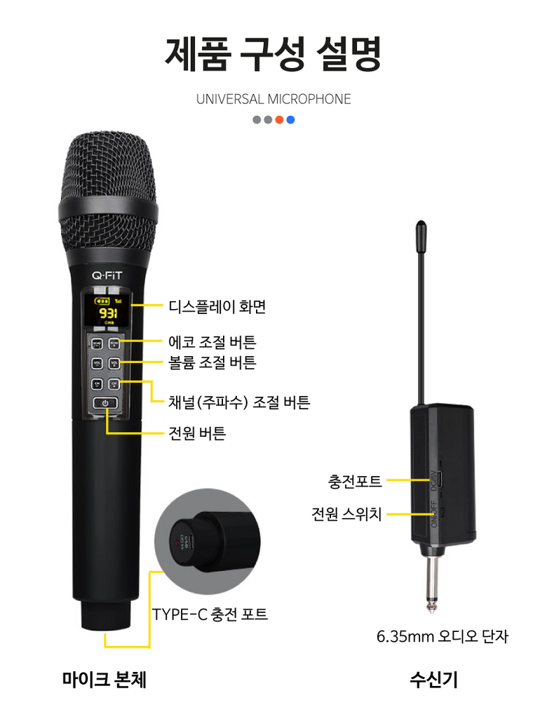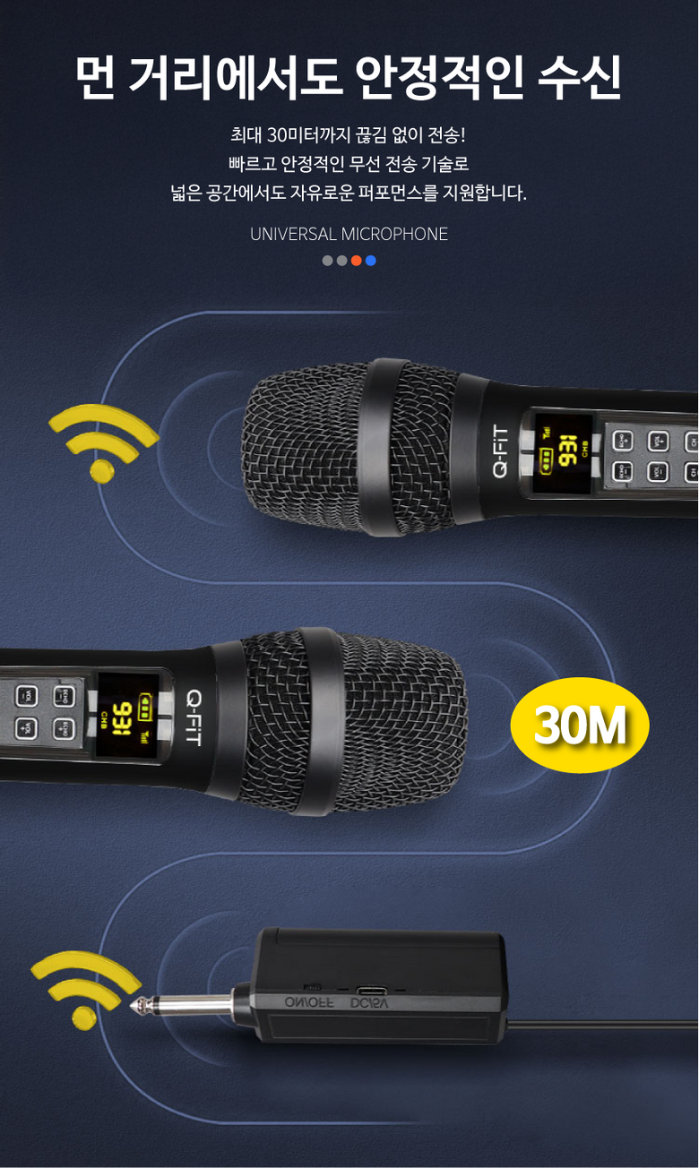 큐핏 강의용 공연용 행사용 무선마이크 노래방 다이나믹 수업용 휴대용 UHF 무선마이크