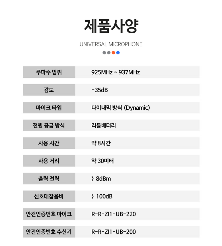 | 품명 및 모델명 | 큐핏 무선마이크 UB-220 | KC 인증정보 | 마이크 : R-R-ZI1-UB-220 수신기 : R-R-ZI1-UB-200 |