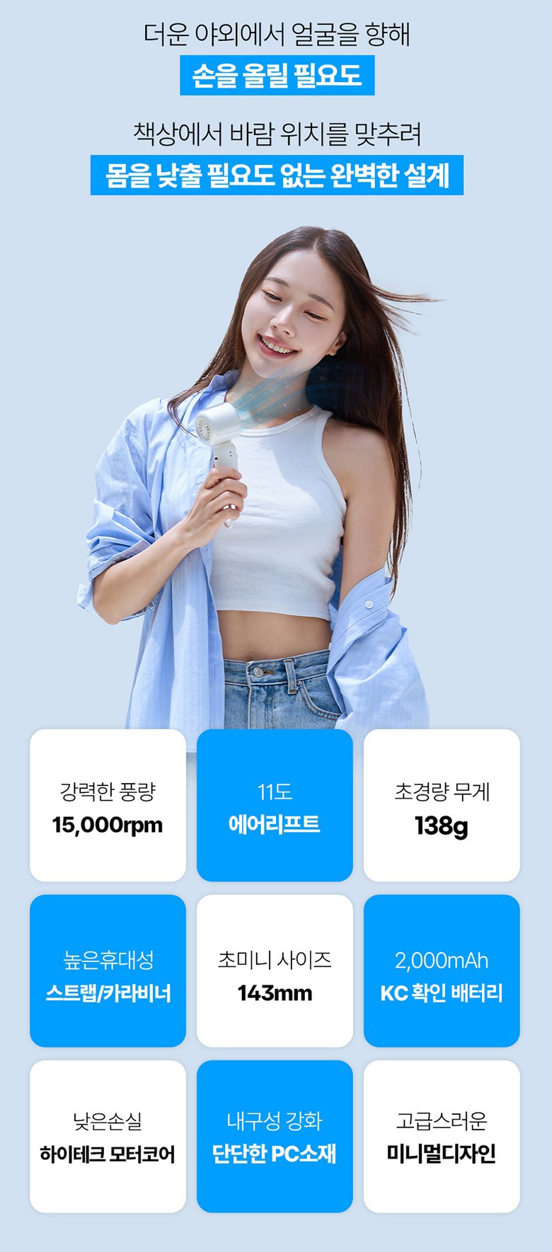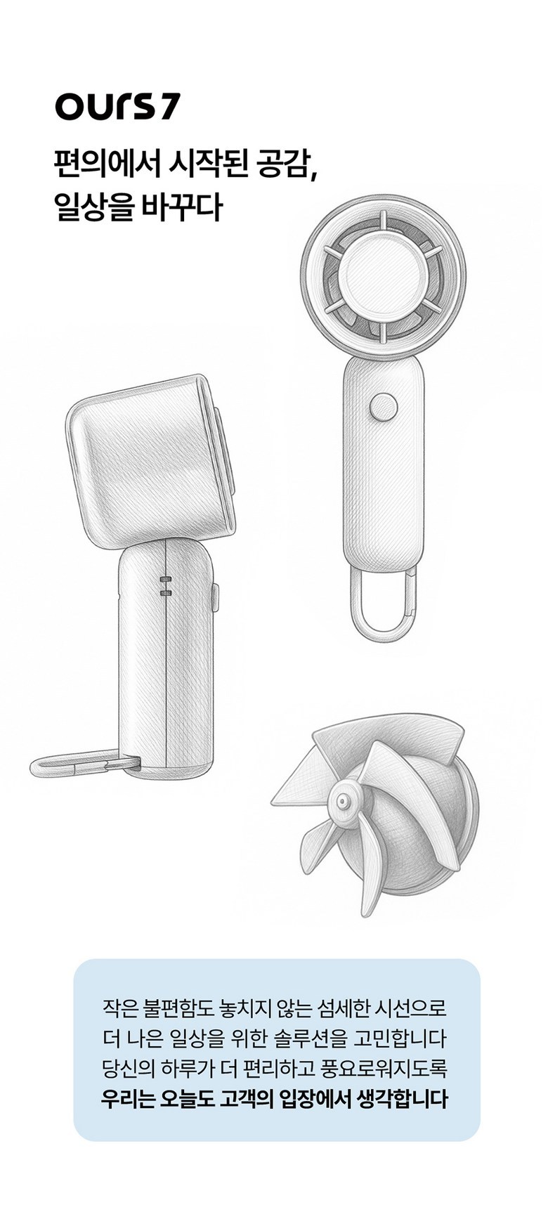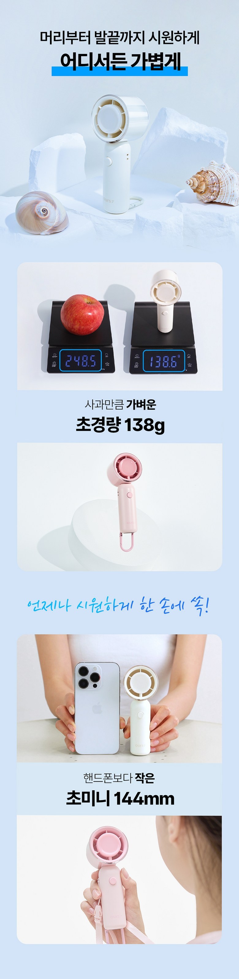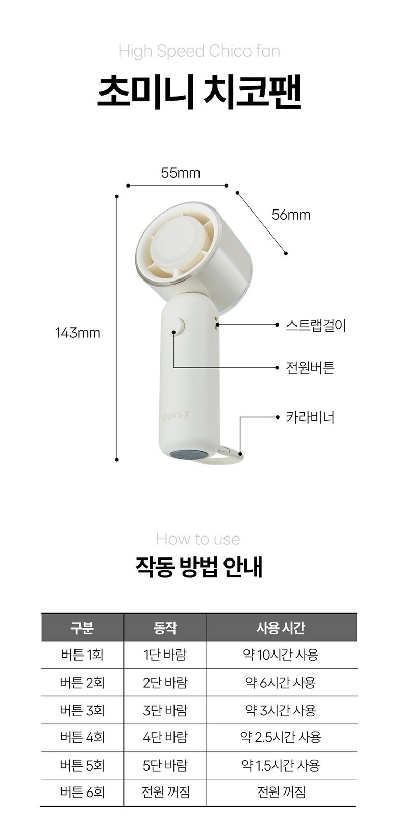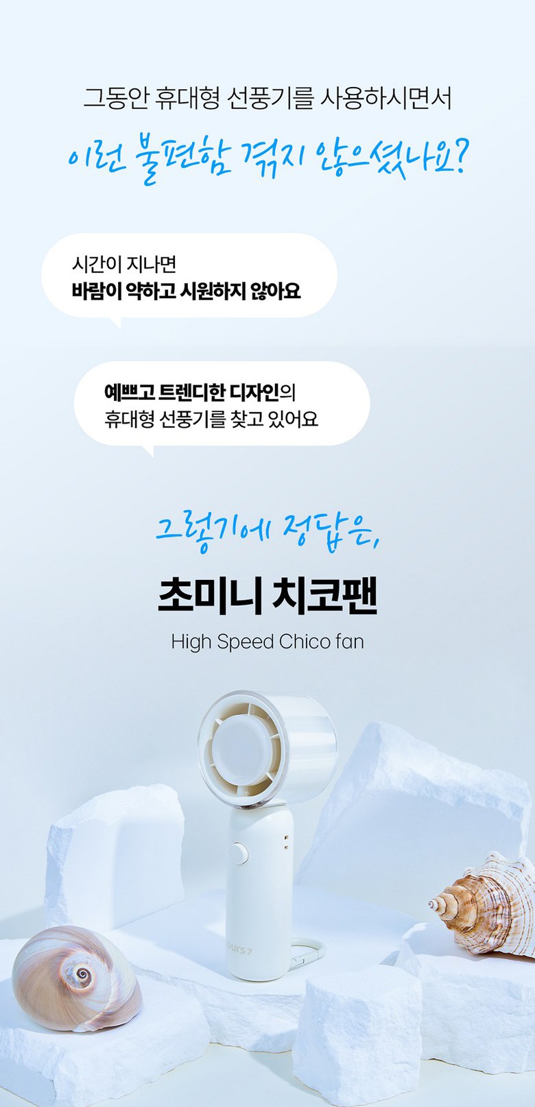 아워스7 초강력 고속 BLDC 무선 휴대용 핸디 선풍기 치코팬 소형 탁상용