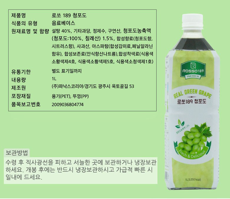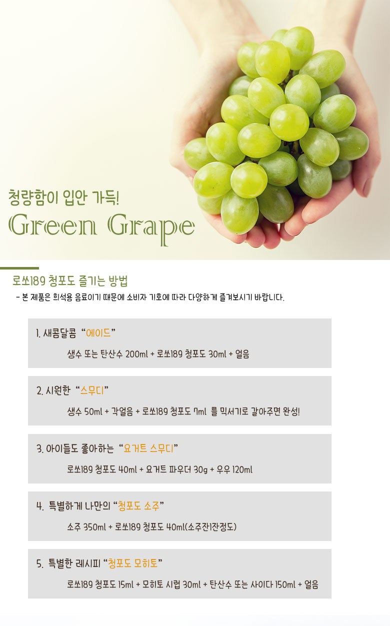 | 제품명 | 로쏘189 청포도 | 식품의 유형 | 음료베이스 |