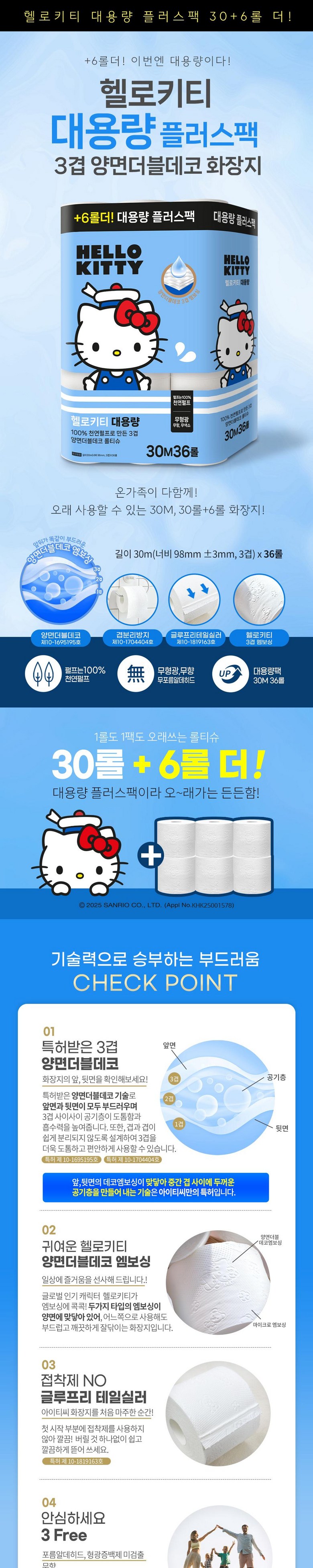 | 품명 및 모델명 | 헬로키티 대용량 플러스 팩 화장지 | 인증/허가 사항 | 상품 상세페이지 참조 |