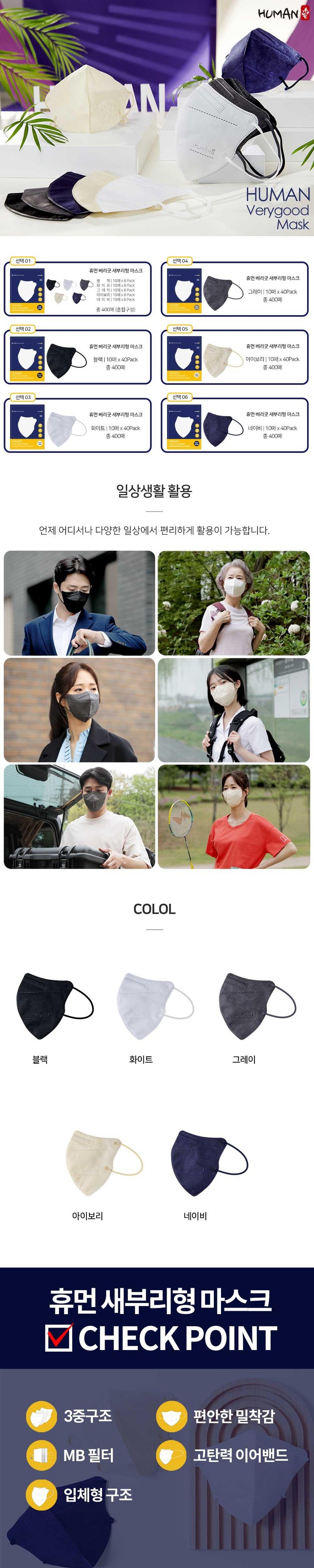 휴먼 베리굿 새부리형 마스크 400매 덴탈마스크 3중필터 일회용 마스크