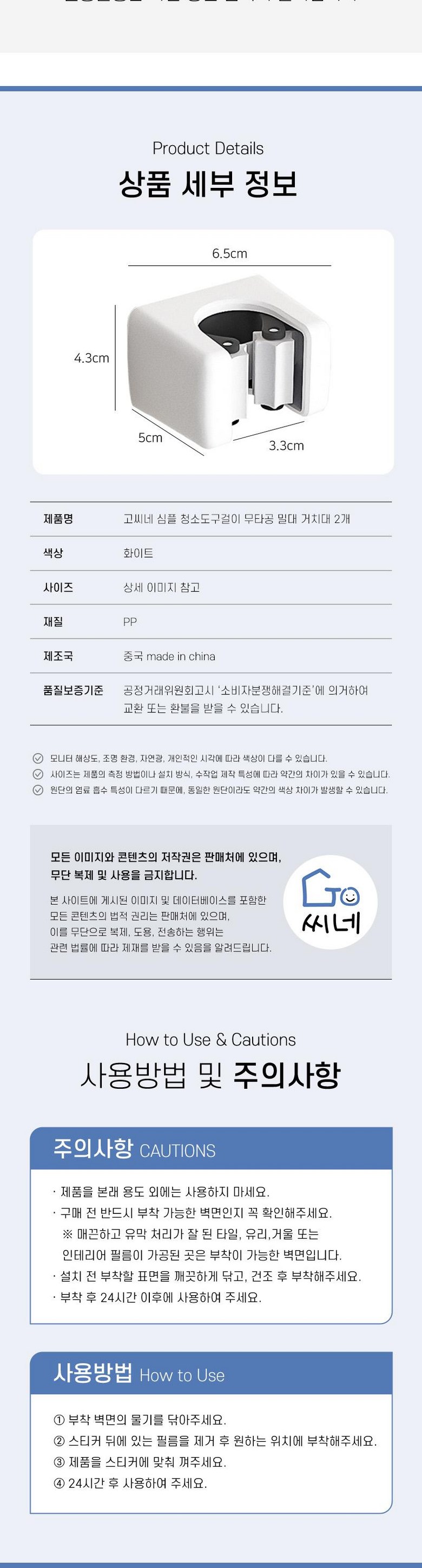 - 벽걸이/고리 고정방식: 접착형