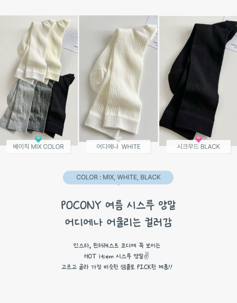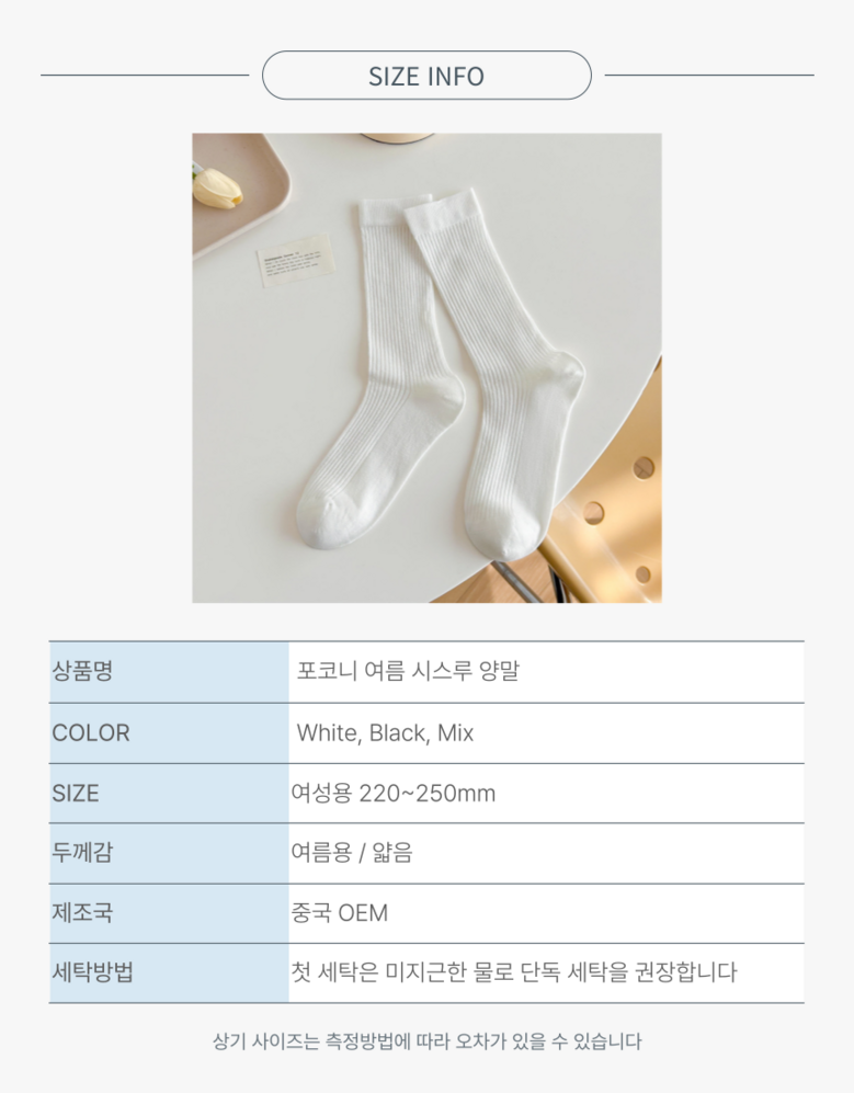 | 종류 | 양말 | 소재 | 면, 폴리우레탄, 폴리에스터 |