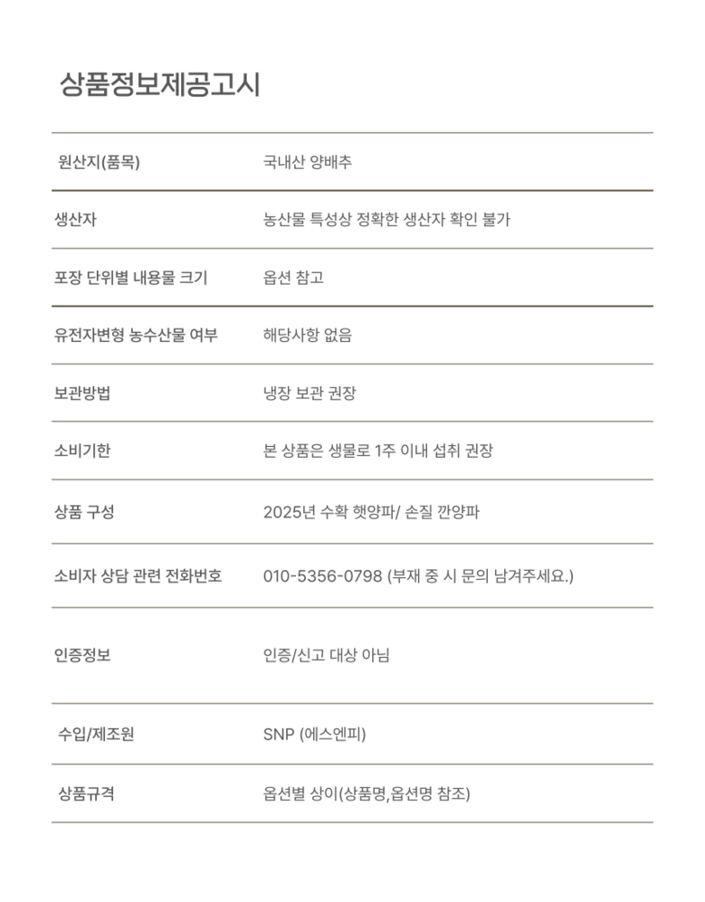 | 제조연월일, 소비기한 또는 품질유지기한 | 상품 상세페이지 참조 | 세부 품목군별 표시사항 | 상품 상세페이지 참조 |