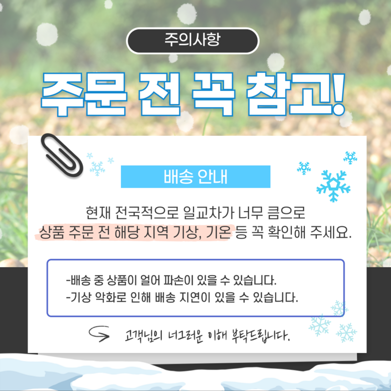 - 상품문의 및 후기게시판을 통해 취소나 환불, 반품 등은 처리되지 않습니다.