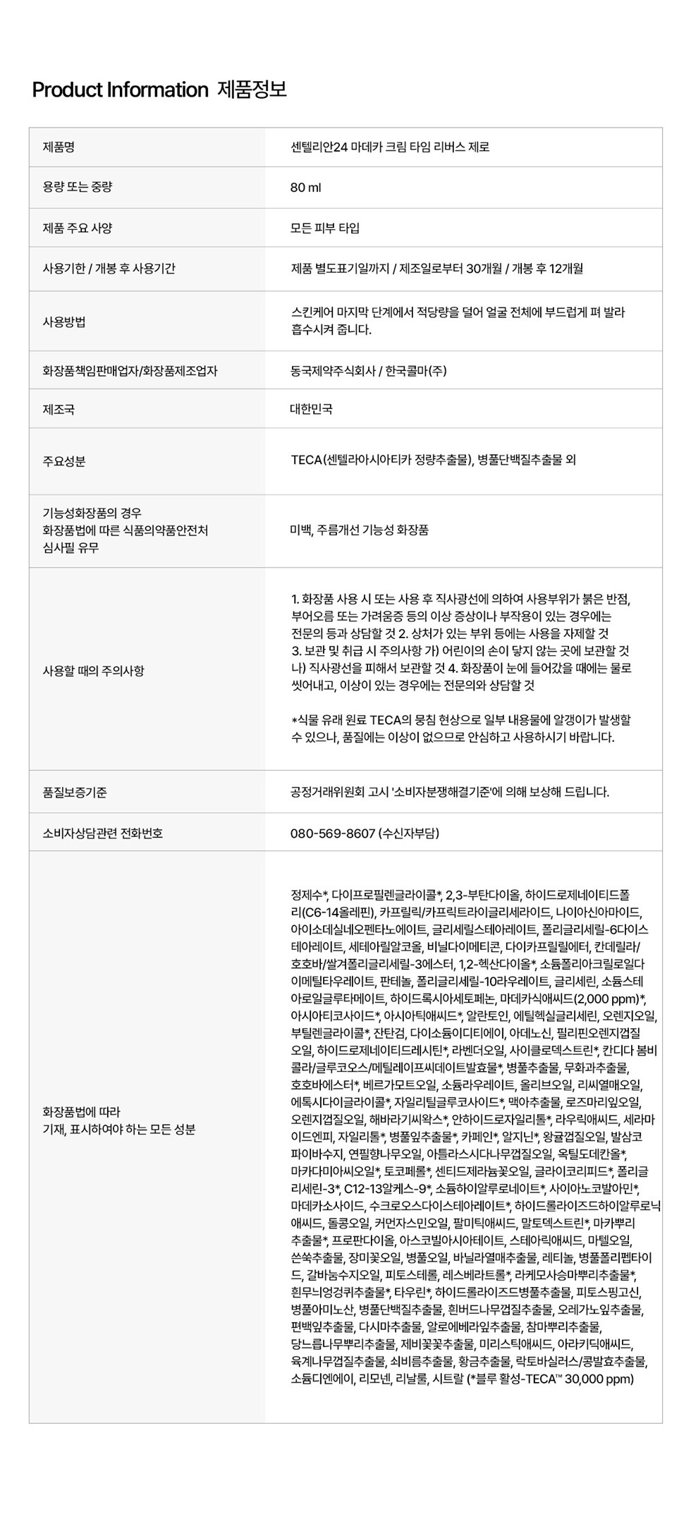 | 화장품제조업자, 화장품책임판매업자 및 맞춤형화장품판매업자 | 컨텐츠 참조 | 제조국 | 대한민국 |