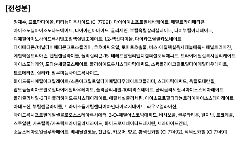 | 화장품제조업자, 화장품책임판매업자 및 맞춤형화장품판매업자 | 컨텐츠 참조 | 제조국 | 대한민국 |