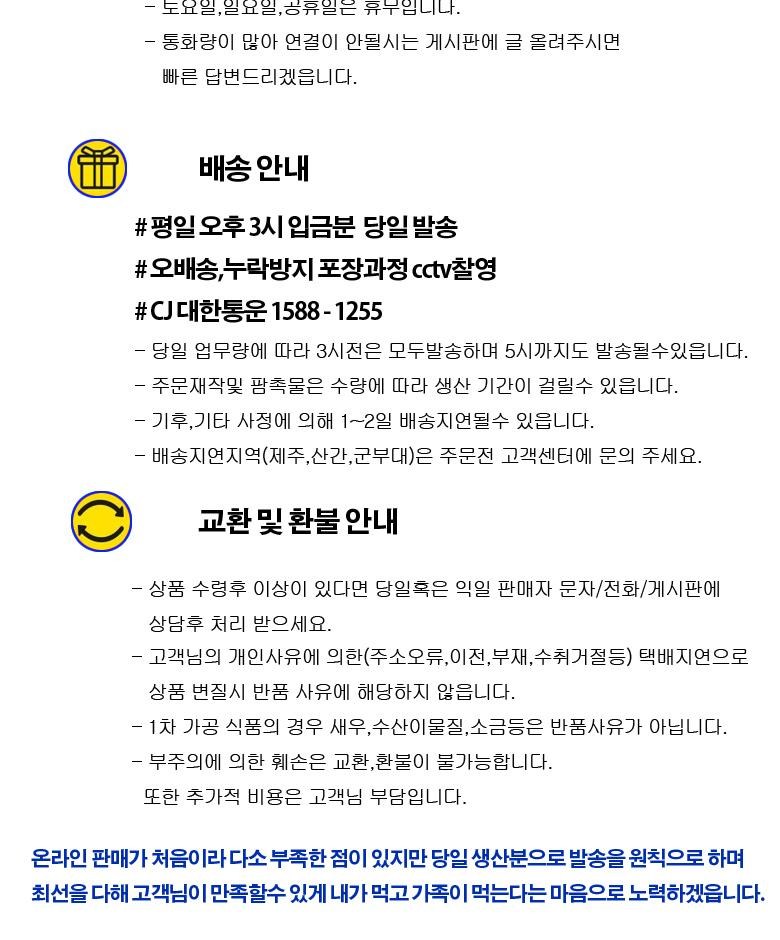 - 상품문의 및 후기게시판을 통해 취소나 환불, 반품 등은 처리되지 않습니다.
