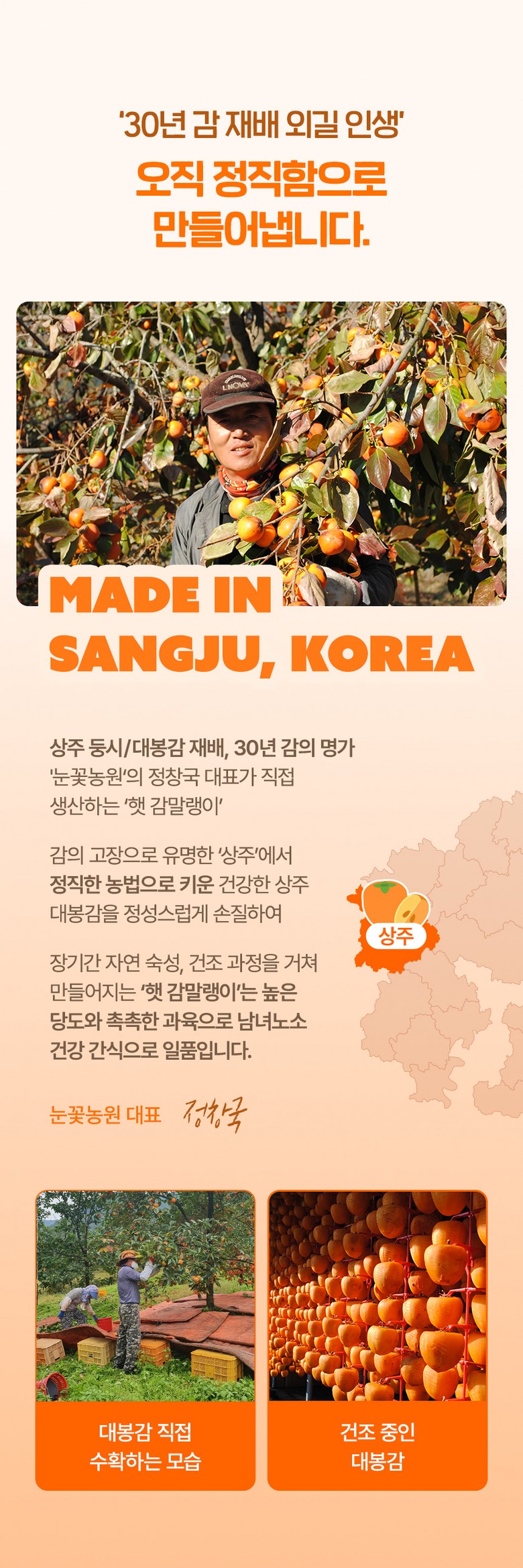상호/대표자 | 눈꽃곶감 / 한현자 | 사업장 소재지 | 경상북도 상주시 내서면 능암1길 11 눈꽃농원 |