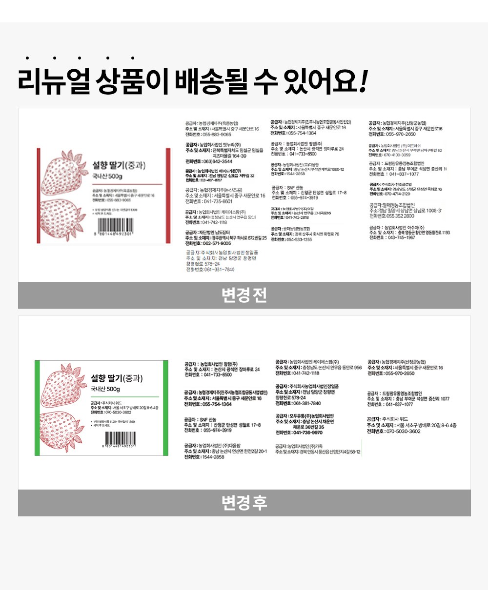 - ㆍ모니터 해상도의 차이로 인해 색상이나 이미지가 실제와 달라, 고객이 단순 변심으로 교환/반품을 무료로 요청하는 경우