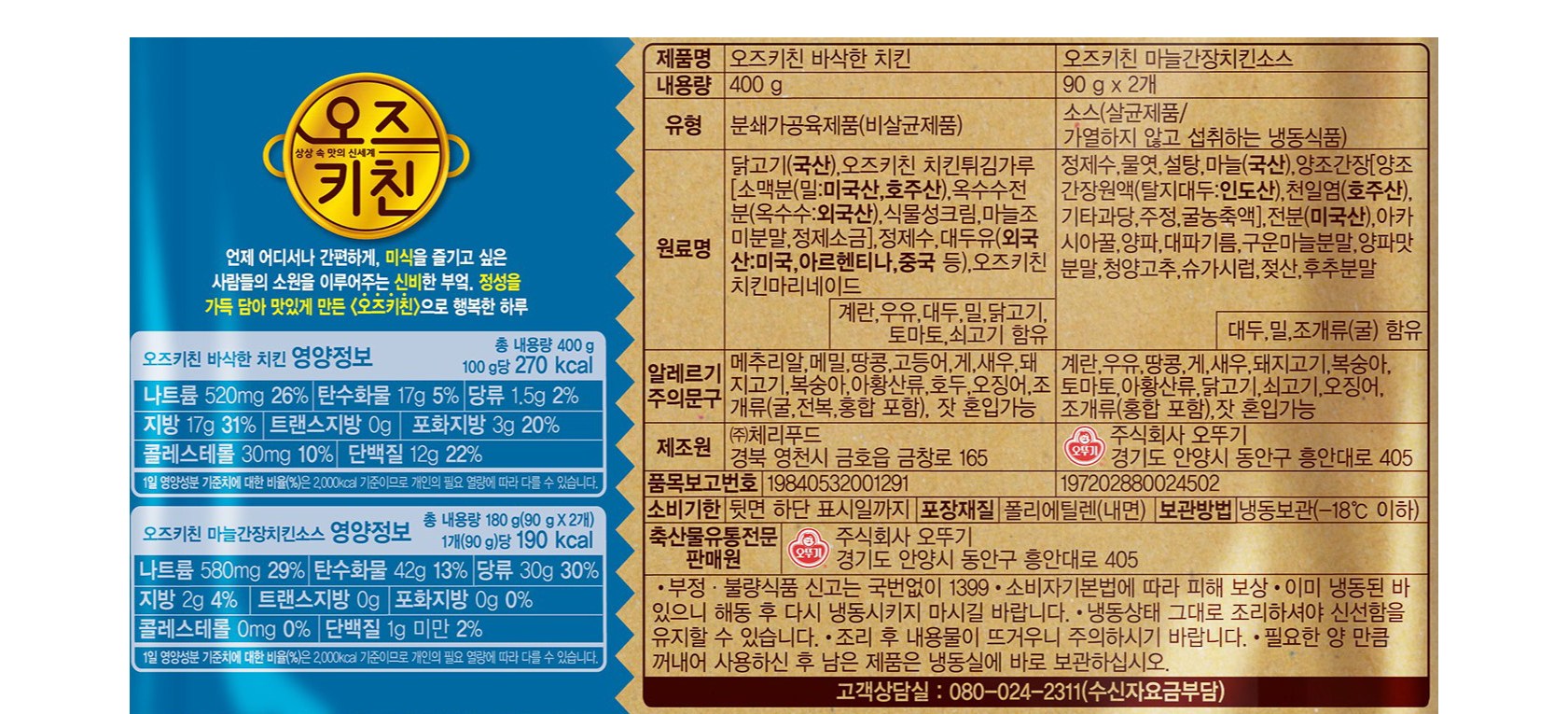 달짝지근하고 짭조름한 마늘 간장 치킨을 가정에서 손쉽게 만들어보세요. 마늘 간장 치킨 소스가 동봉되어 있어 간편하답니다. 에어프라이어 등으로 조리하기만 하면, 겉은 바삭하고 속은 촉촉한 치킨이 금세 완성되지요. 간식으로 드셔도 좋고, 술안주로 활용해도 좋아요.