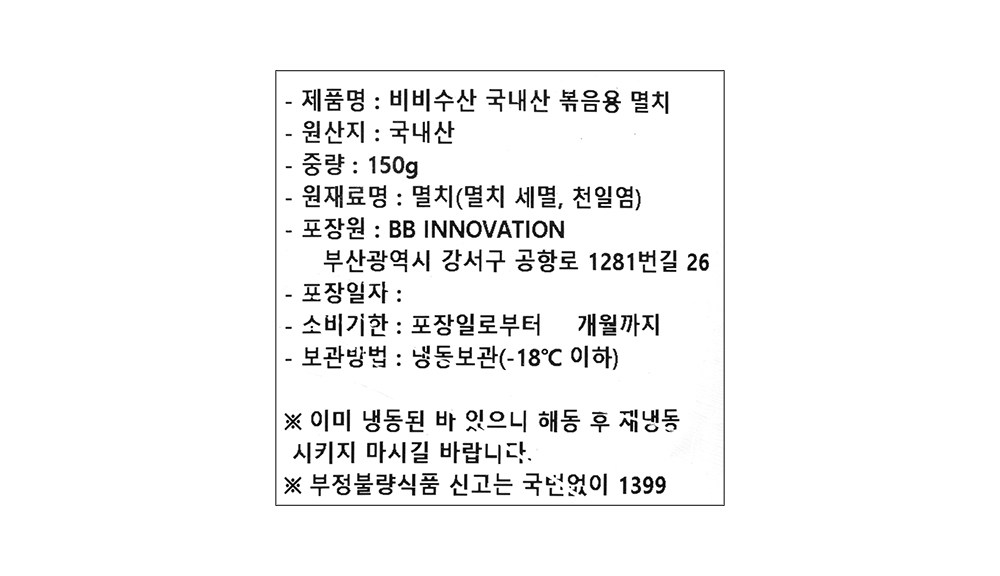 - 건어물 용도: 볶음/조림용
