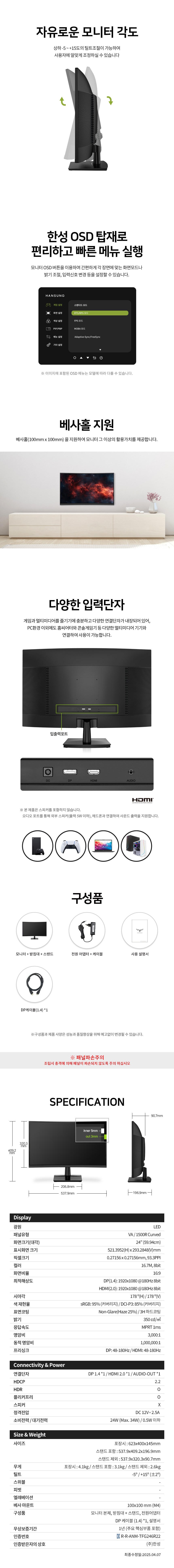 | 품명 및 모델명 | 모니터 / TFG24F18V | KC 인증정보 | 본품 : 유/KC마크, R-R-ANM-TFG246R22 / 어댑터 : HU10590-23039A, R-R-AYA-AY30EA |