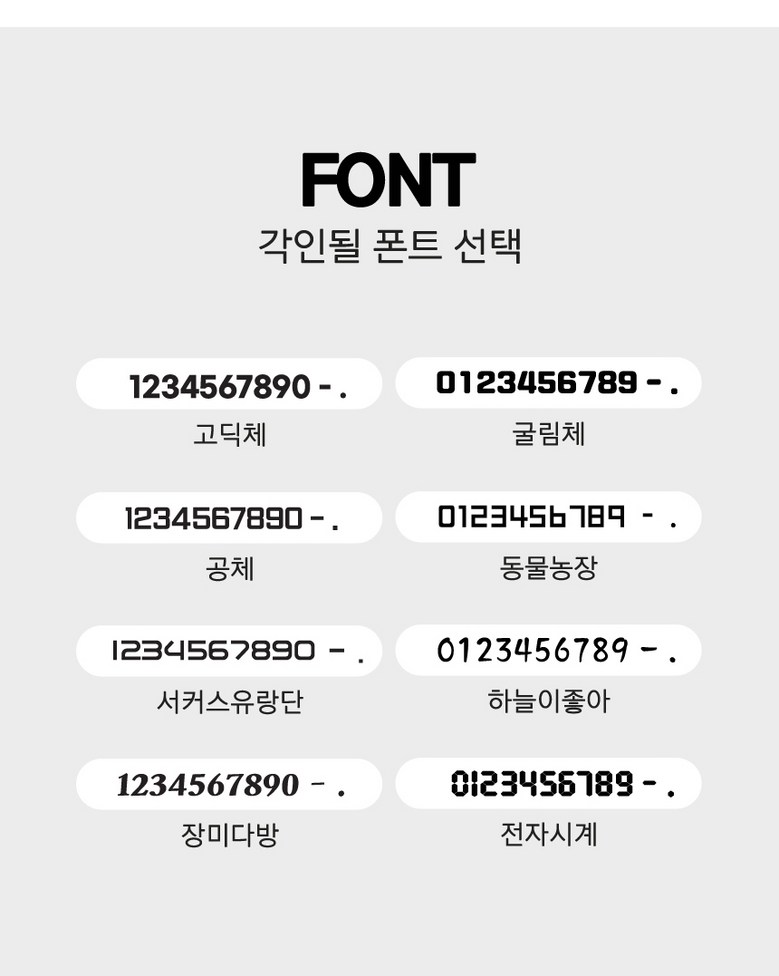 폰트 미기재시 기본폰트(굴림체)로 제작됩니다.