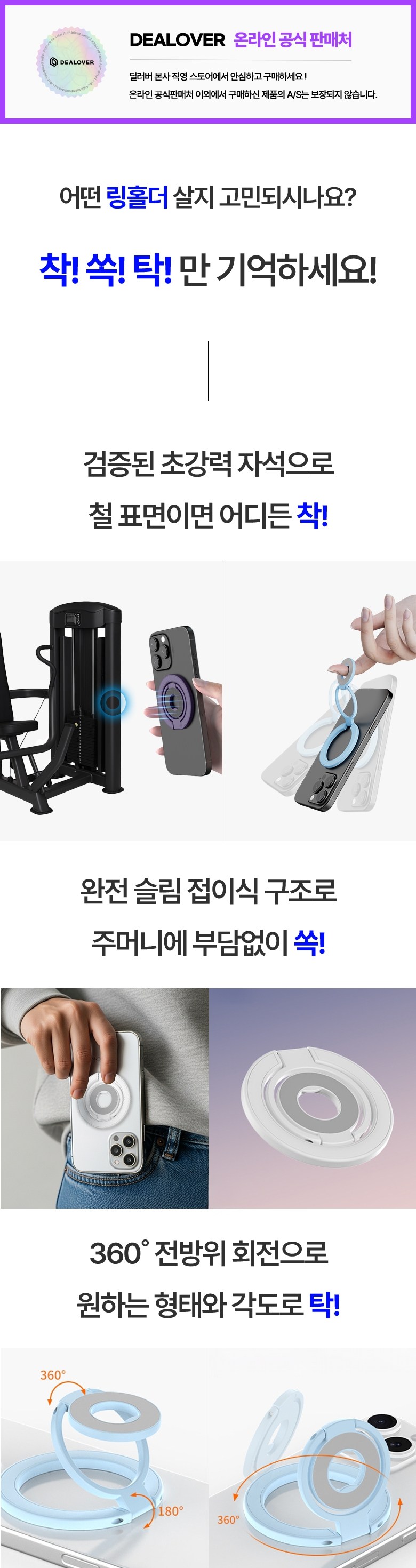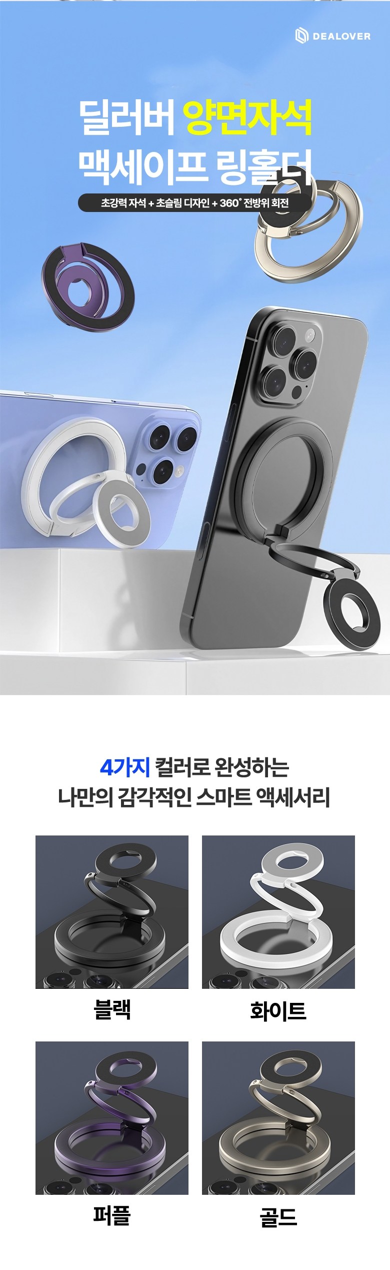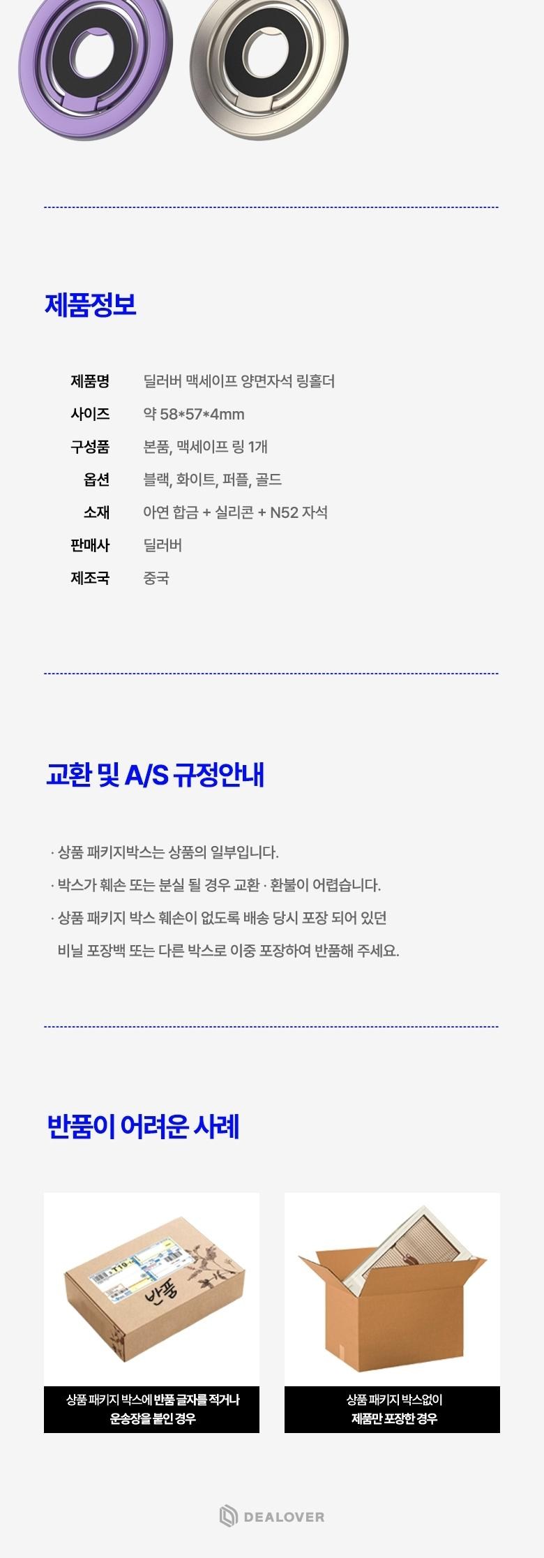| 품명 및 모델명 | 딜러버 맥세이프 양면자석 그립 스마트톡 링홀더 | KC 인증정보 | 상품 상세페이지 참조 |