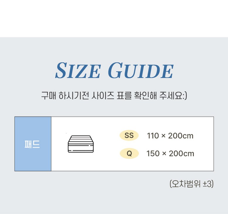 | 치수 | 상세페이지 참조 | 제품구성 | 방수 침대패드 1장 |