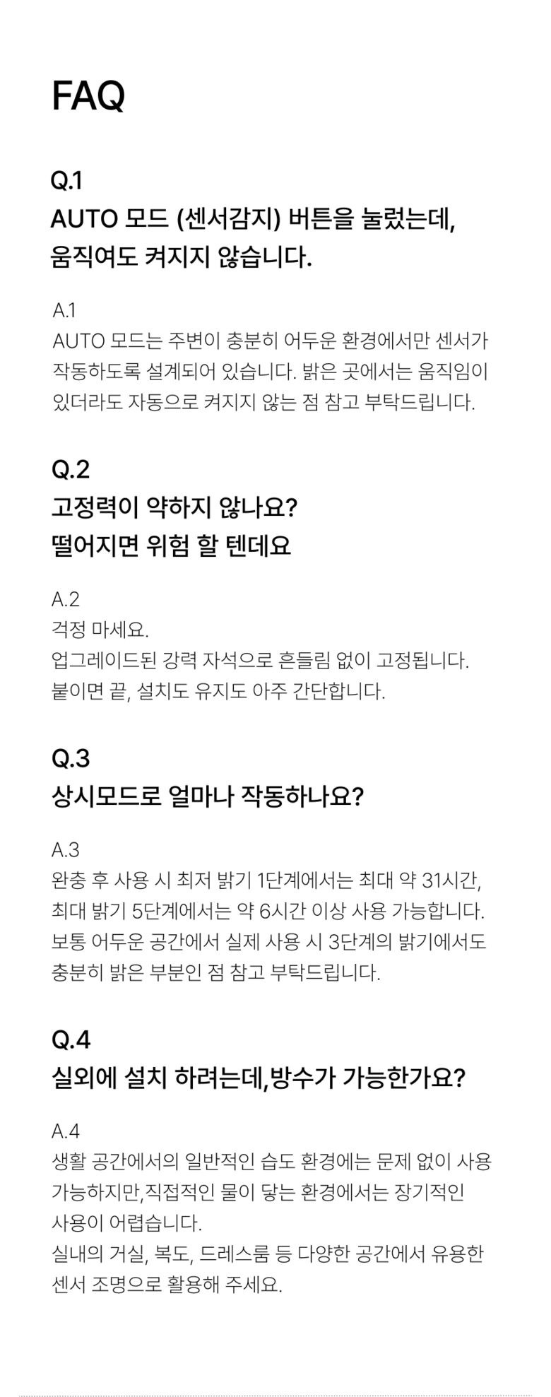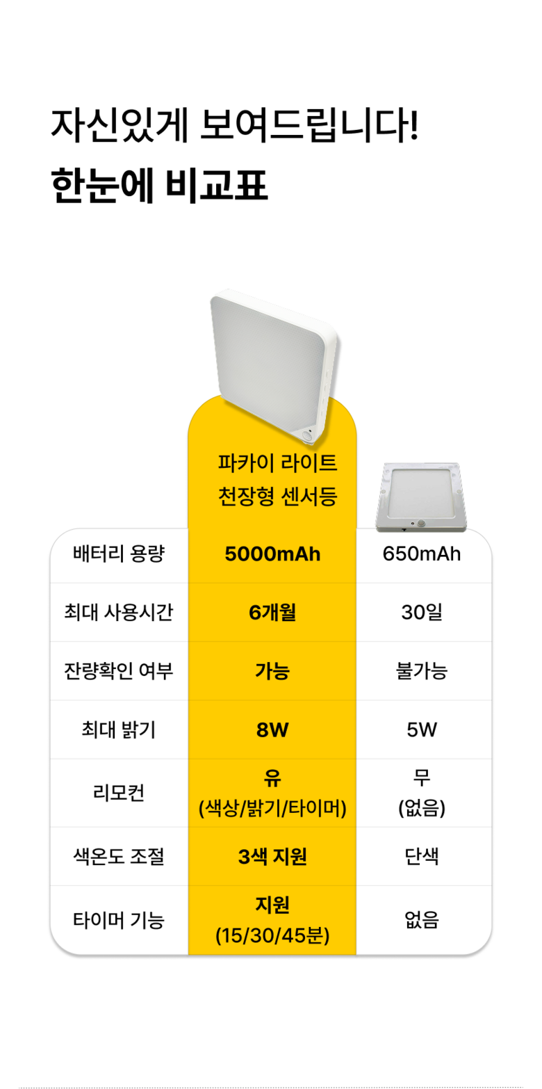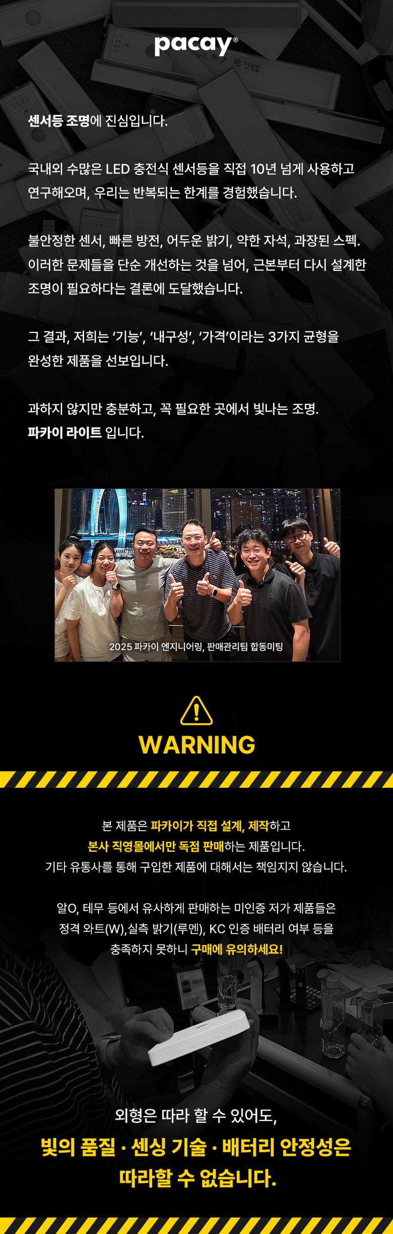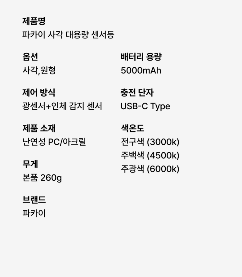 | 품명 및 모델명 | 파카이 대용량 배터리 자석 LED 센서등 - 사각 | KC 인증정보 | 해당없음 |