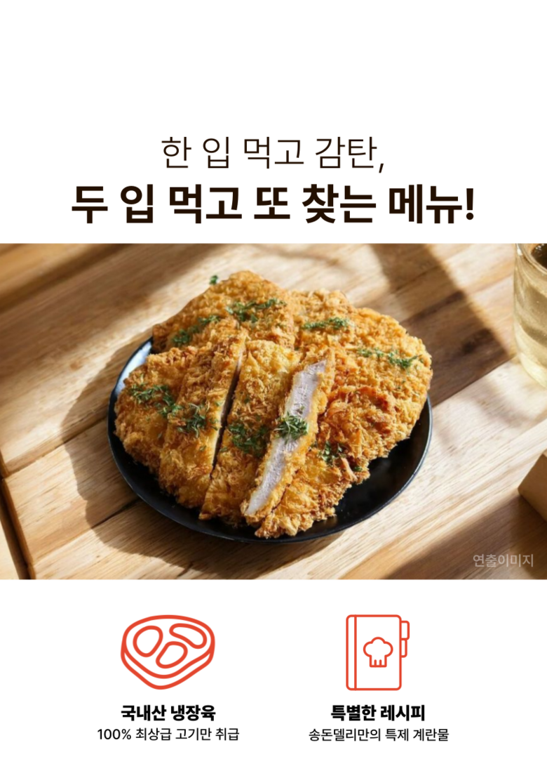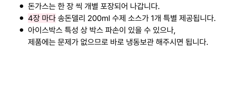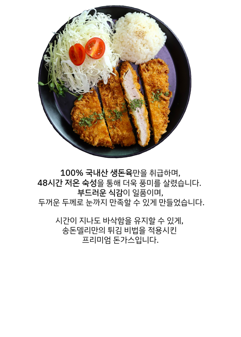 | 생산자 및 소재지 | 부천시 장말로 200번길 8, 1층 송돈델리 | 제조연월일, 소비기한 또는 품질유지기한 | 진공포장지 전면 기재 |