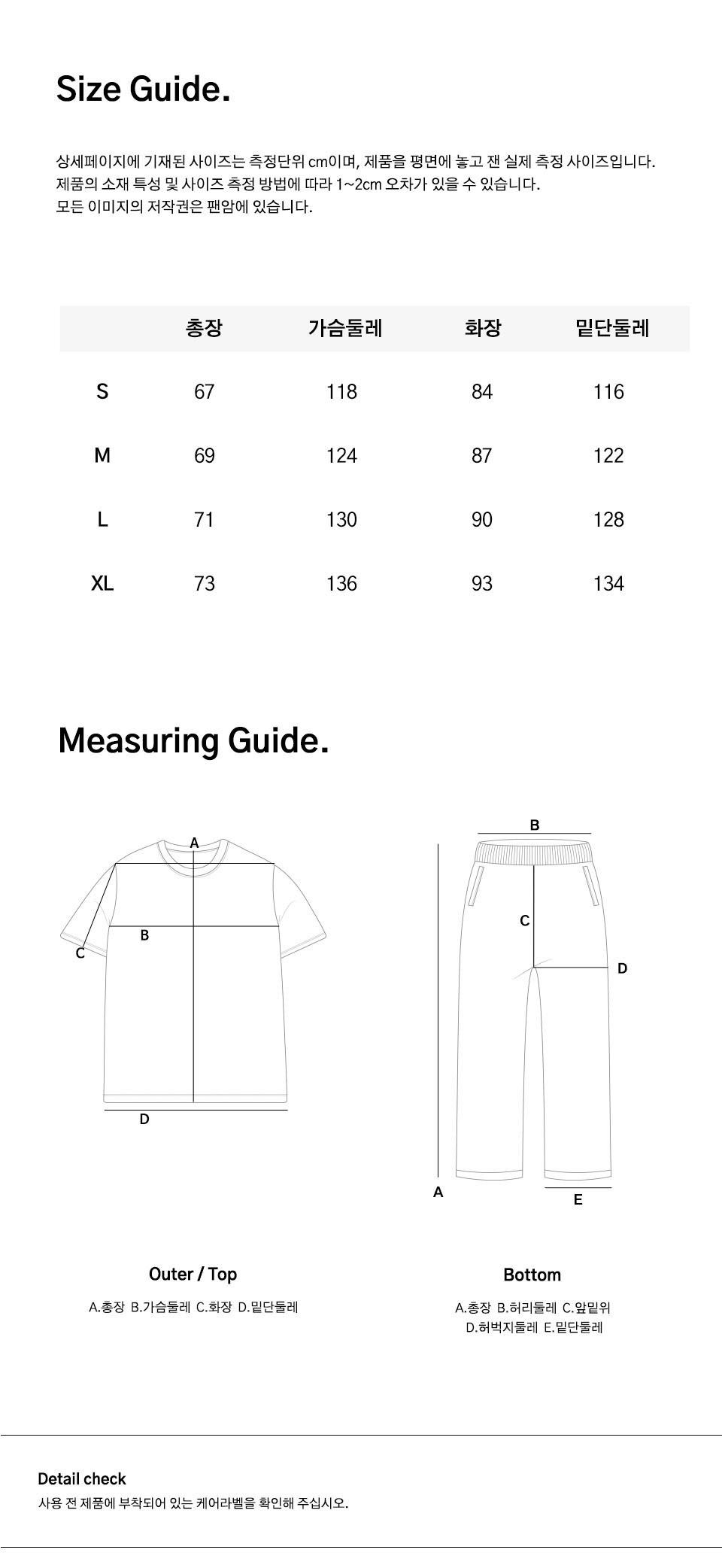 | 제조국 | 중국 | 세탁방법 및 취급시 주의사항 | 1. 세제를 풀어 놓은 물에 담그어 두지 마시고, 반드시 단시간에 단독 손세탁하십시오. 2. 탈수 후 뭉친 상태로 보관 시 이염이 발생 할 수 있으니 세탁 후 바로 건조하십시오. 3. 흰색제품과 유색제품은 반드시 구분하여 별도 세탁하여 주십시오. 4. 착용 후 땀을 많이 흘렸을 경우 즉시 세탁하십시오. 5. 천연 섬유제품일 경우 곰팡이나 해충의 피해를 입지 않도록 충분히 건조, 보관하여 주십시오. 6. 프린트 특성상 벗겨짐 우려가 있으니 반드시 뒤집어서 세탁바랍니다. 7. 세탁시 지퍼나 단추를 잠근 상태에서 세탁하십시오. 8. 기계건조(열건조 및 열풍건조)는 제품 수축의 원인이 될 수 있으므로 삼가주십시오. 9. 금속장식은 물세탁시 녹이 발생할 수 있고, 체질에 따라 피부 알레르기가 발생할 수 있습니다. 10. 소비자 부주의로 인한 제품 손상은 보상이 되지 않으므로 위의 사항을 필히 준수바랍니다. |