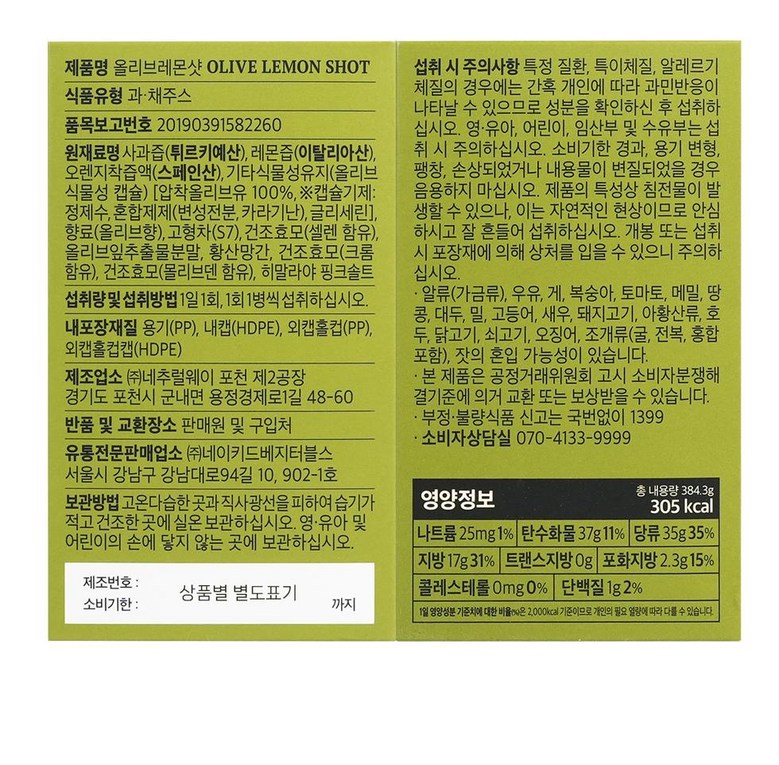 | 생산자 및 소재지 | 상품 상세페이지 참조 | 제조연월일, 소비기한 또는 품질유지기한 | 상품 상세페이지 참조 |