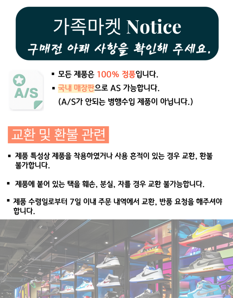 - ㆍ모니터 해상도의 차이로 인해 색상이나 이미지가 실제와 달라, 고객이 단순 변심으로 교환/반품을 무료로 요청하는 경우