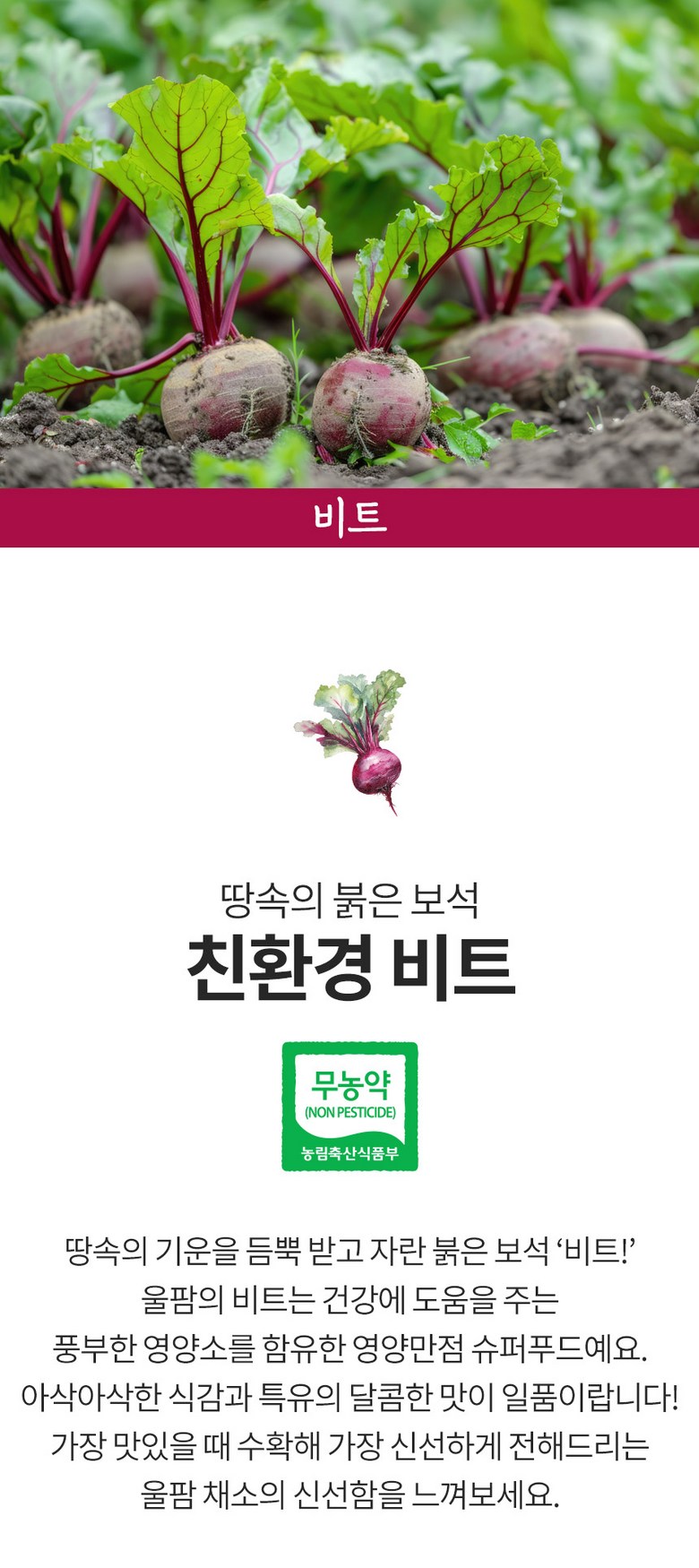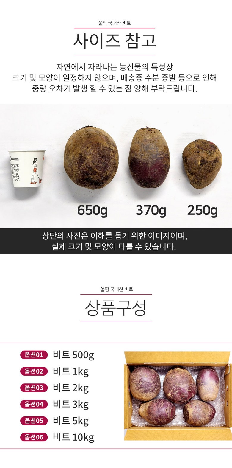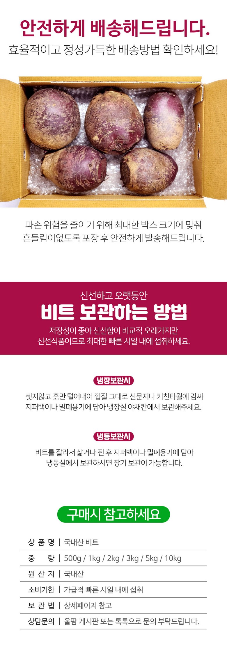 | 품목 또는 명칭 | 비트 | 포장단위별 내용물의 용량(중량),수량,크기 | 500g/1kg/2kg/3kg/5kg/10kg |