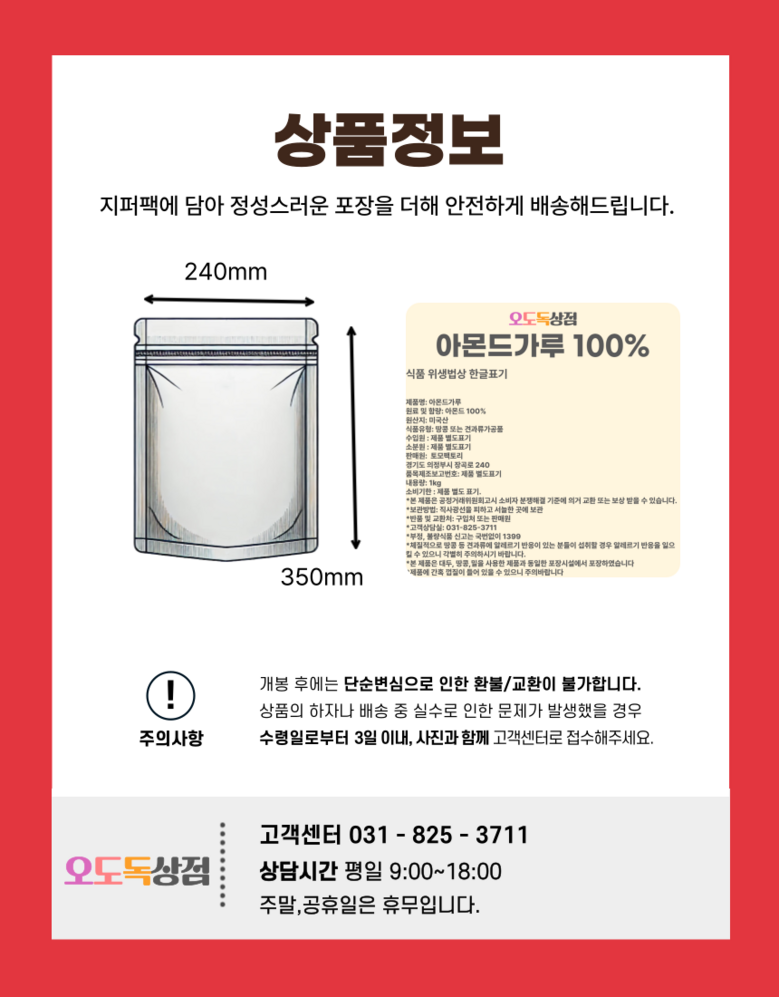 | 포장단위별 내용물의 용량(중량), 수량 | 아몬드가루 1kg | 원재료명 및 함량 | 제품별도표기 |