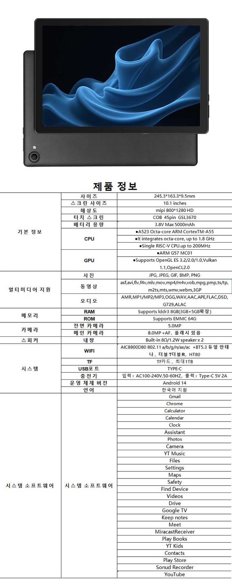 | 정격전압, 소비전력 | AC100-240V | 출시년월 | 24년1월 |