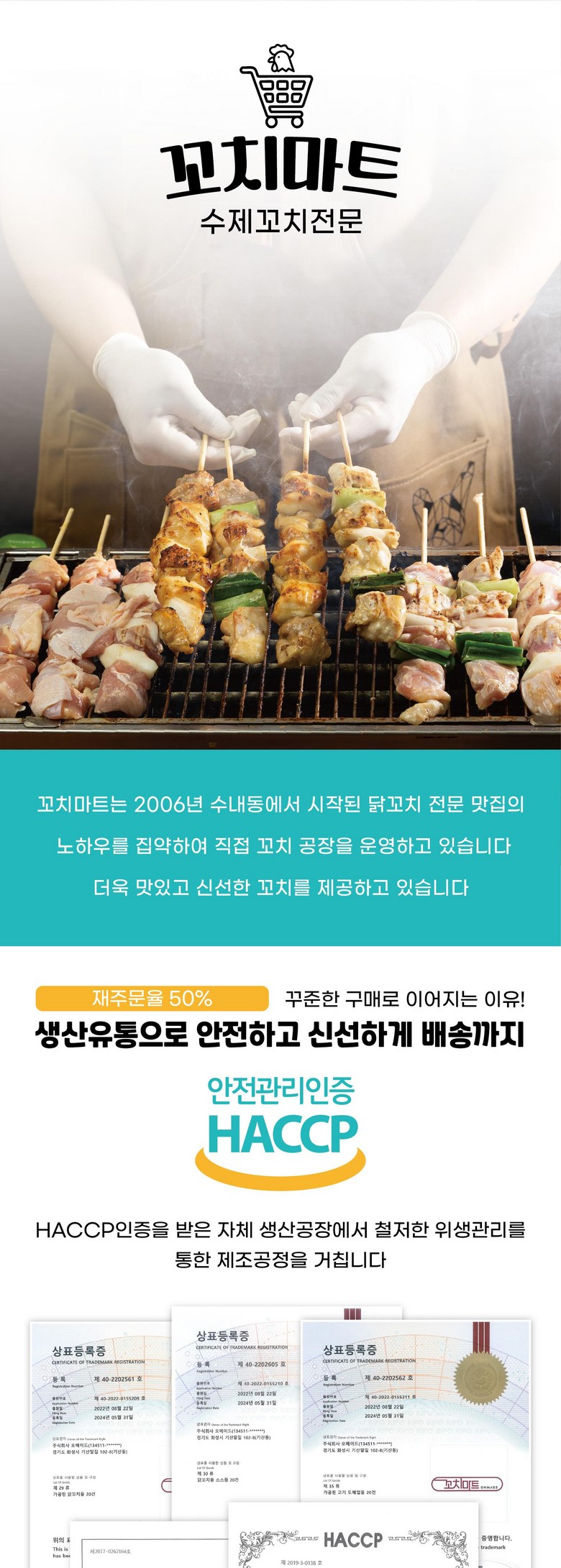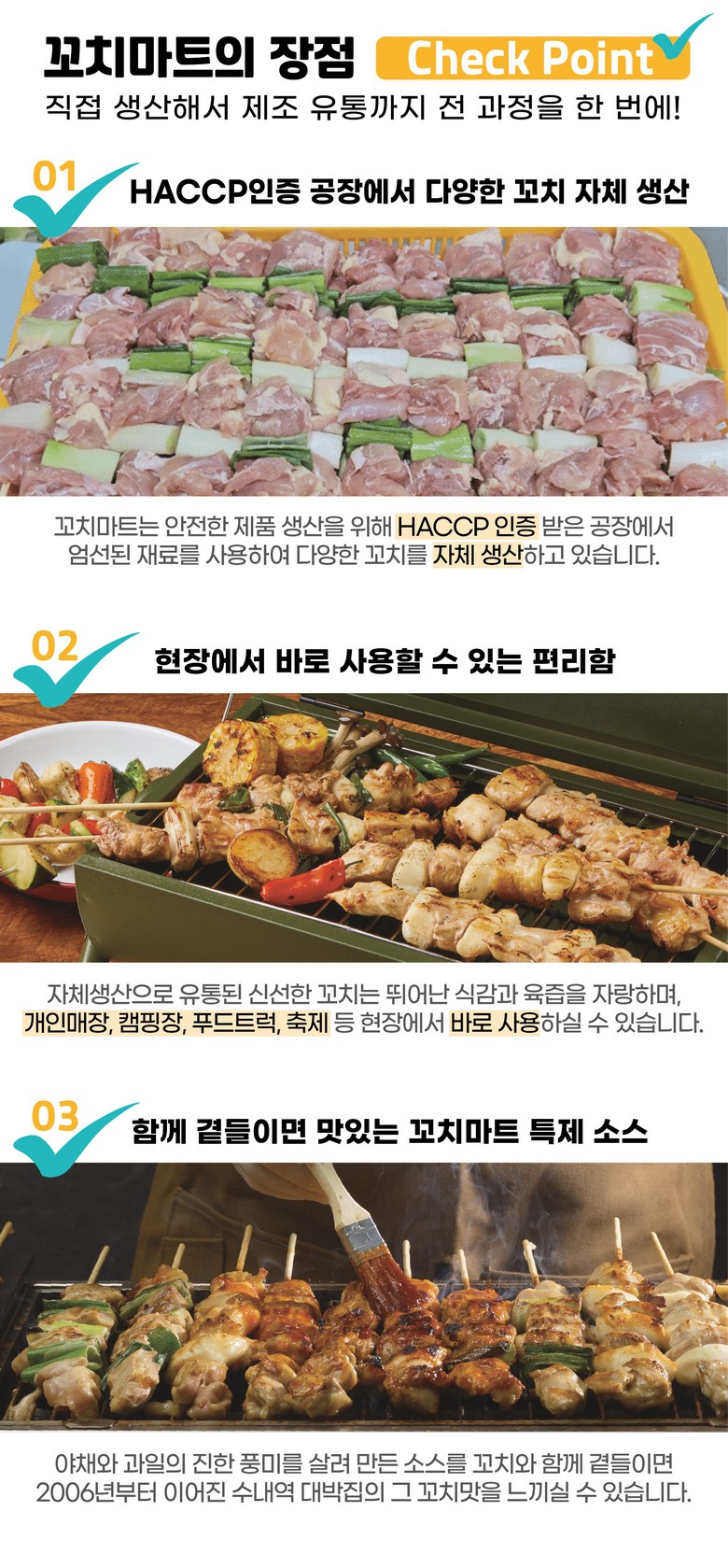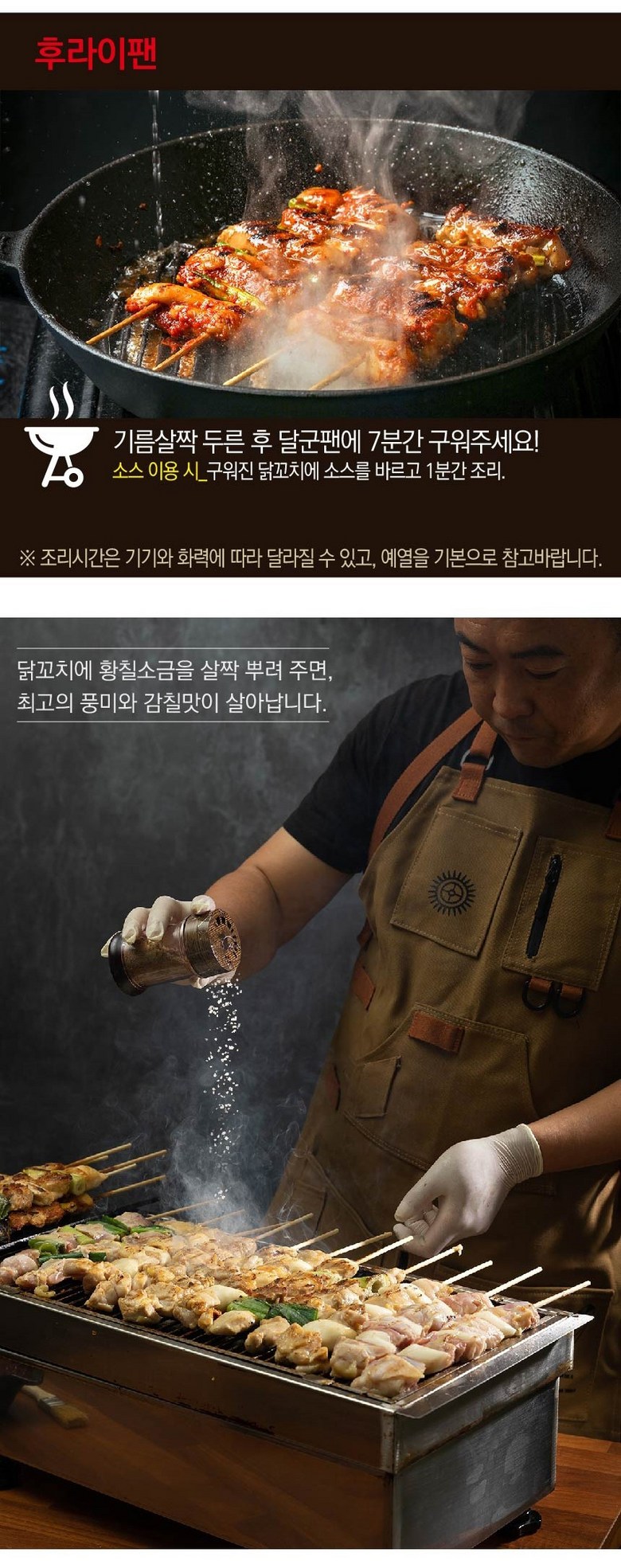 | 품목 또는 명칭 | 파닭꼬치 20cm | 포장단위별 내용물의 용량(중량),수량,크기 | 55g x 15개 1팩 |
