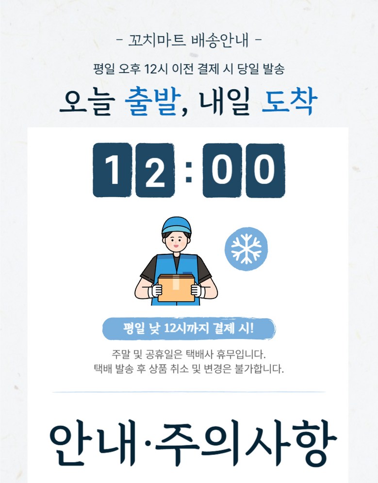 | 배송방법 | 신선/냉장/냉동 | 배송비 | 무료배송 - 도서산간 지역 배송불가 |